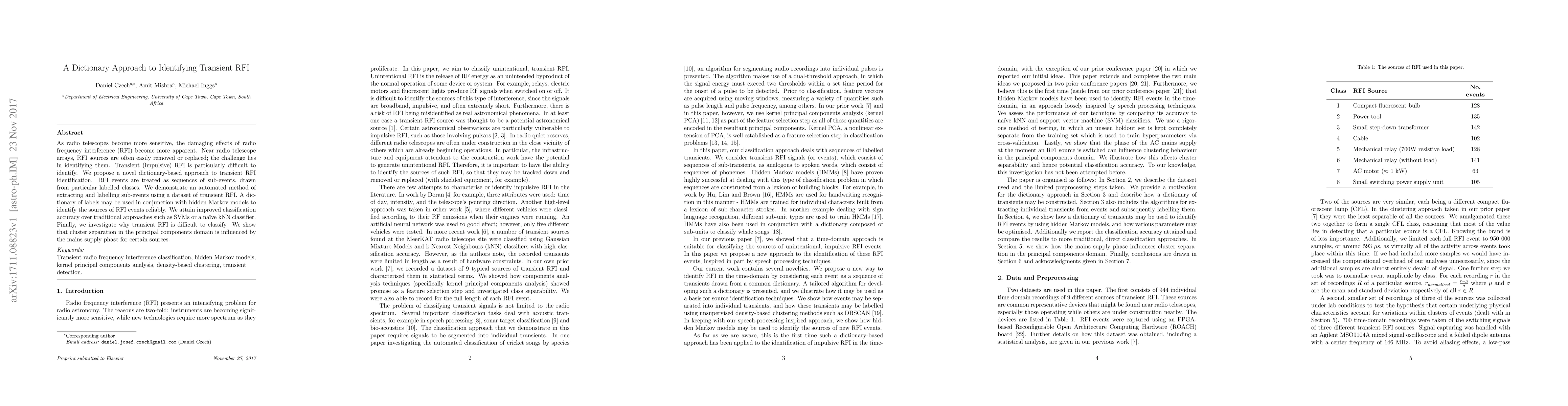 The study highlights the challenges of classifying transient RFI, revealing that mains supply phase influences cluster separation in principal components domain.