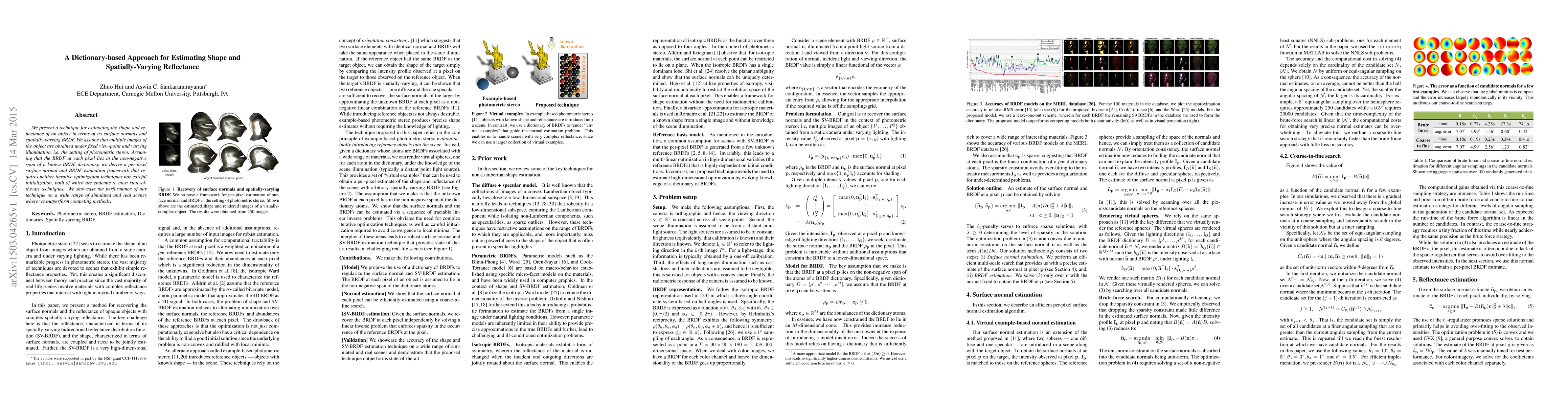 We present a technique for estimating the shape and reflectance of an object in terms of its surface normals and spatially-varying BRDF. We assume that multiple images of the object are obtained under fixed view-point and varying illumination, i.e, the setting of photometric stereo. Assuming that the BRDF at each pixel lies in the non-negative span of a known BRDF dictionary, we derive a per-pixel surface normal and BRDF estimation framework that requires neither iterative optimization techniques nor careful initialization, both of which are endemic to most state-of-the-art techniques. We showcase the performance of our technique on a wide range of simulated and real scenes where we outperform competing methods.