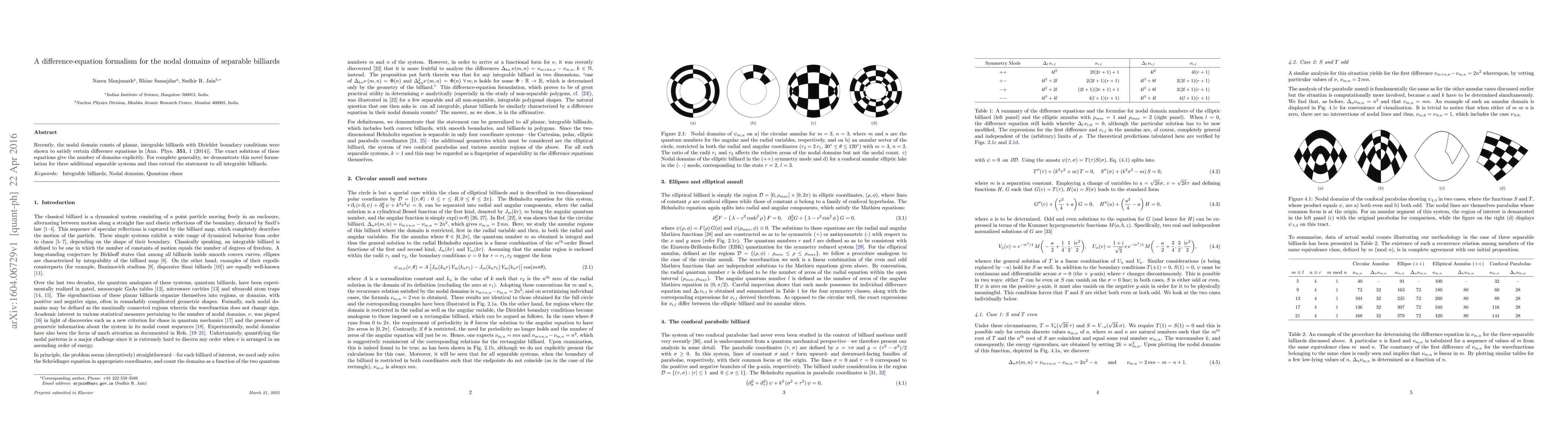 Recently, the nodal domain counts of planar, integrable billiards with Dirichlet boundary conditions were shown to satisfy certain difference equations in [Ann. Phys. 351, 1-12 (2014)]. The exact solutions of these equations give the number of domains explicitly. For complete generality, we demonstrate this novel formulation for three additional separable systems and thus extend the statement to all integrable billiards.