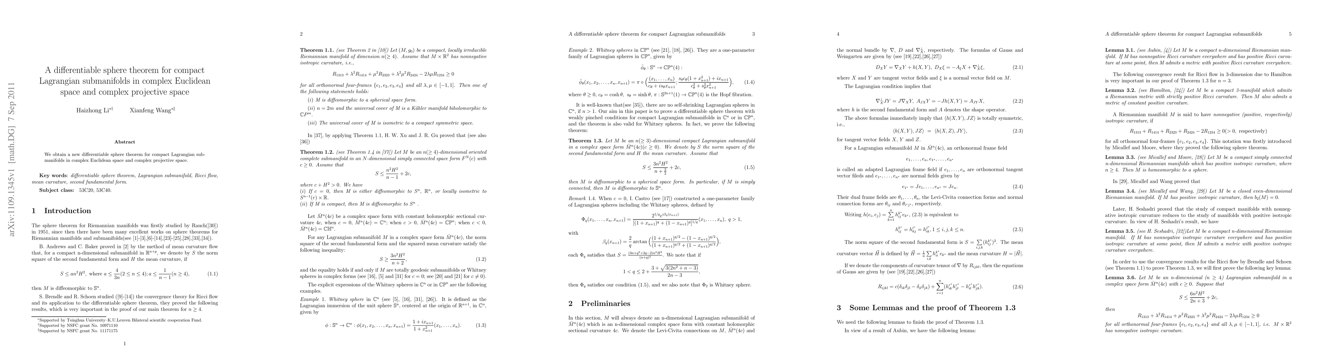 Summary: This paper establishes a novel differentiable sphere theorem for compact Lagrangian submanifolds within both complex Euclidean and complex projective spaces, providing new insights into their geometric properties.