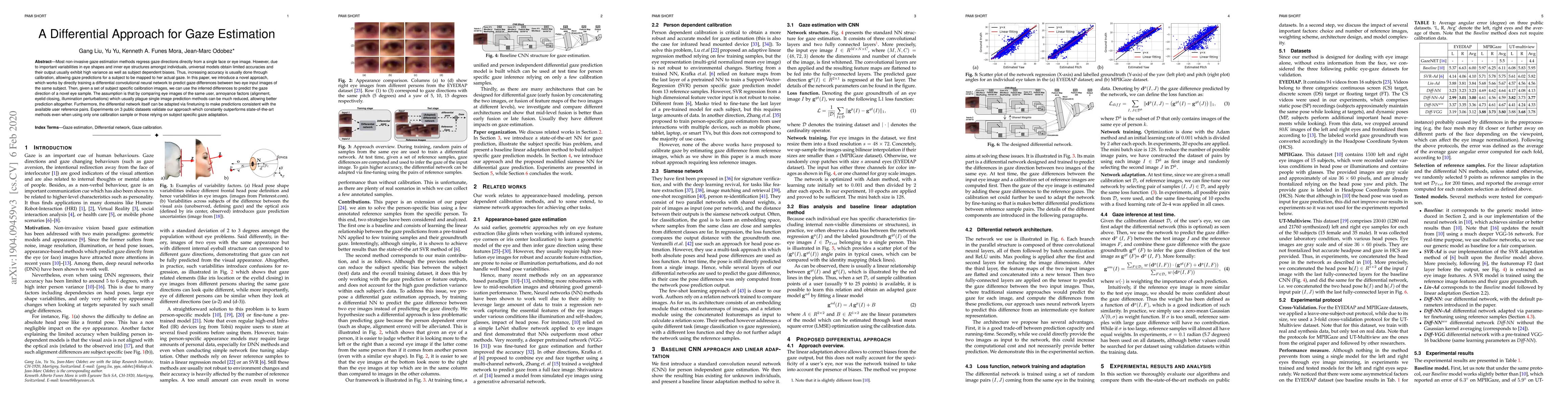 This paper proposes a novel differential convolutional neural network for gaze estimation that predicts gaze differences between two eye images of the same subject, reducing errors from individual variabilities and improving accuracy. Experiments show consistent outperformance over state-of-the-art methods on public datasets.