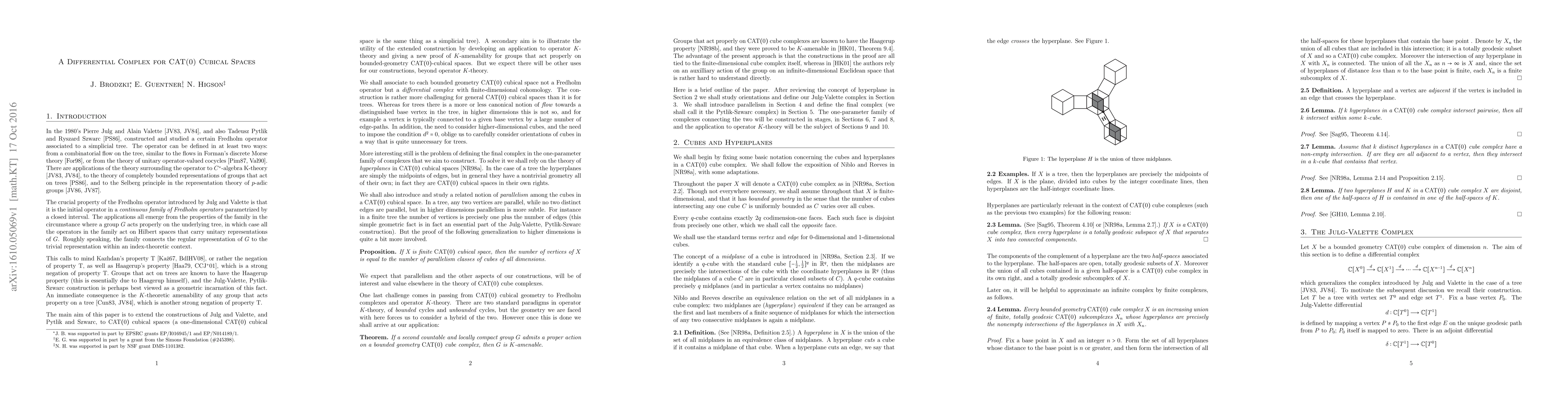 In the 1980's Pierre Julg and Alain Valette, and also Tadeusz Pytlik and Ryszard Szwarc, constructed and studied a certain Fredholm operator associated to a simplicial tree. The operator can be defined in at least two ways: from a combinatorial flow on the tree, similar to the flows in Forman's discrete Morse theory, or from the theory of unitary operator-valued coccyges. There are applications of the theory surrounding the operator to C*-algebra K-theory, to the theory of completely bounded representations of groups that act on trees, and to the Selberg principle in the representation theory of p-adic groups. The main aim of this paper is to extend the constructions of Julg and Valette, and Pytlik and Szwarc, to CAT(0) cubical spaces. A secondary aim is to illustrate the utility of the extended construction by developing an application to operator K-theory and giving a new proof of K-amenability for groups that act properly on bounded-geometry CAT(0)-cubical spaces.