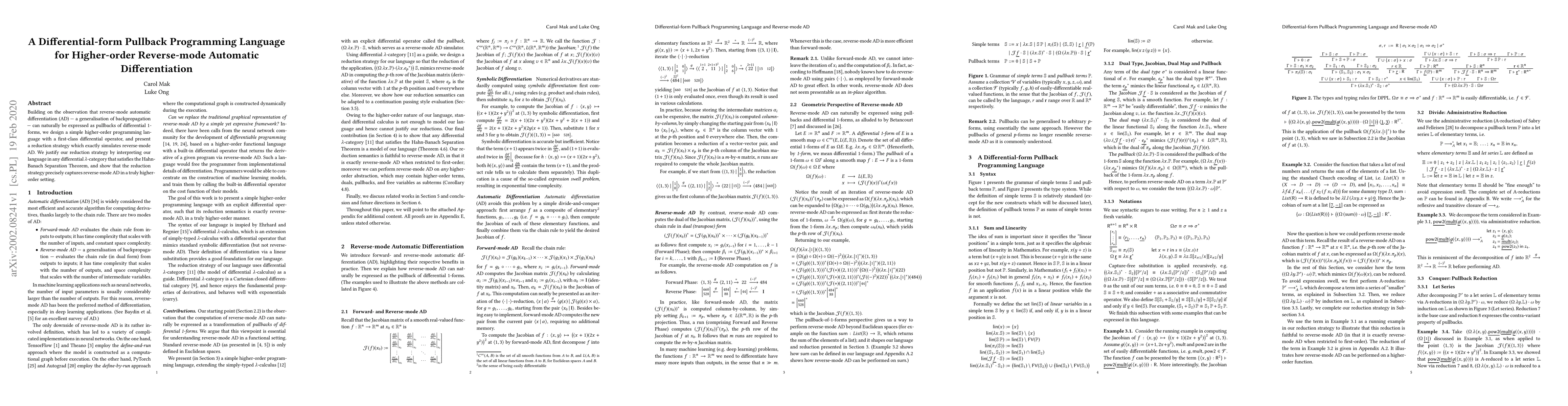 Building on the observation that reverse-mode automatic differentiation (AD) -- a generalisation of backpropagation -- can naturally be expressed as pullbacks of differential 1-forms, we design a simple higher-order programming language with a first-class differential operator, and present a reduction strategy which exactly simulates reverse-mode AD. We justify our reduction strategy by interpreting our language in any differential $\lambda$-category that satisfies the Hahn-Banach Separation Theorem, and show that the reduction strategy precisely captures reverse-mode AD in a truly higher-order setting.