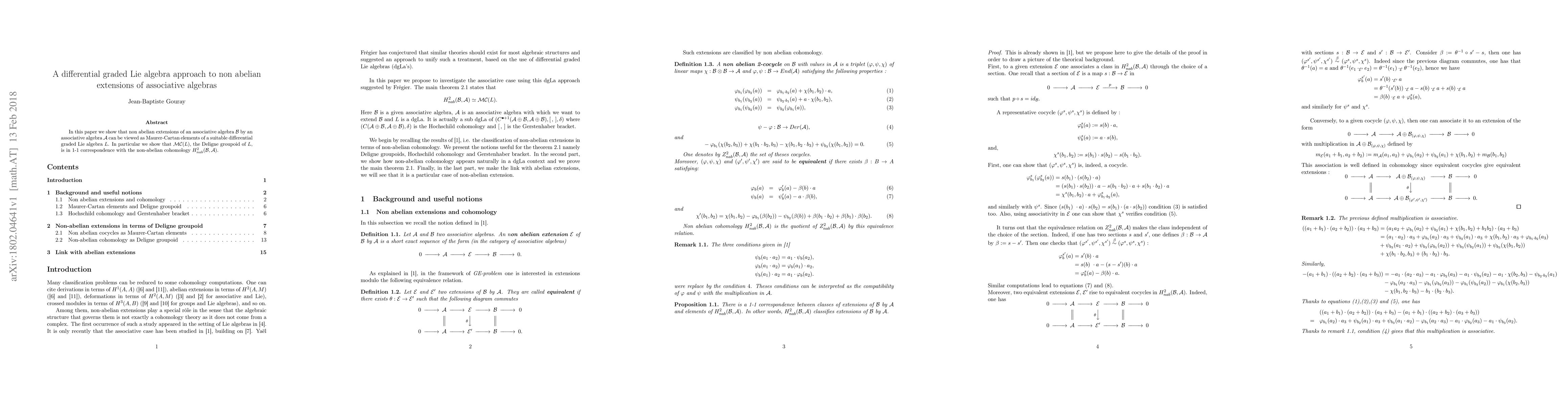 In this paper we show that non abelian extensions of an associative algebra $\mathcal{B}$ by an associative algebra $\mathcal{A}$ can be viewed as Maurer-Cartan elements of a suitable differential graded Lie algebra $L$. In particular we show that $\mathcal{MC}(L)$, the Deligne groupoid of $L$, is in 1-1 correspondence with the non-abelian cohomology $H^2_{nab}(\mathcal{B},\mathcal{A})$.