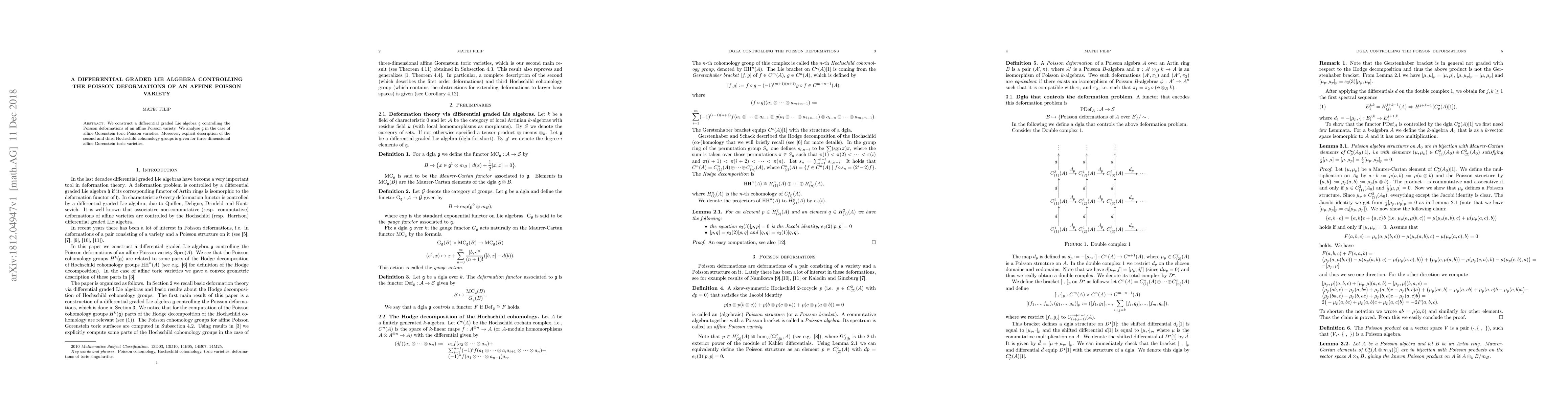 This research contributes to understanding Poisson deformations of affine Poisson varieties, which are crucial in symplectic geometry and mathematical physics, by providing a controlling DGLA and explicit cohomology group descriptions.