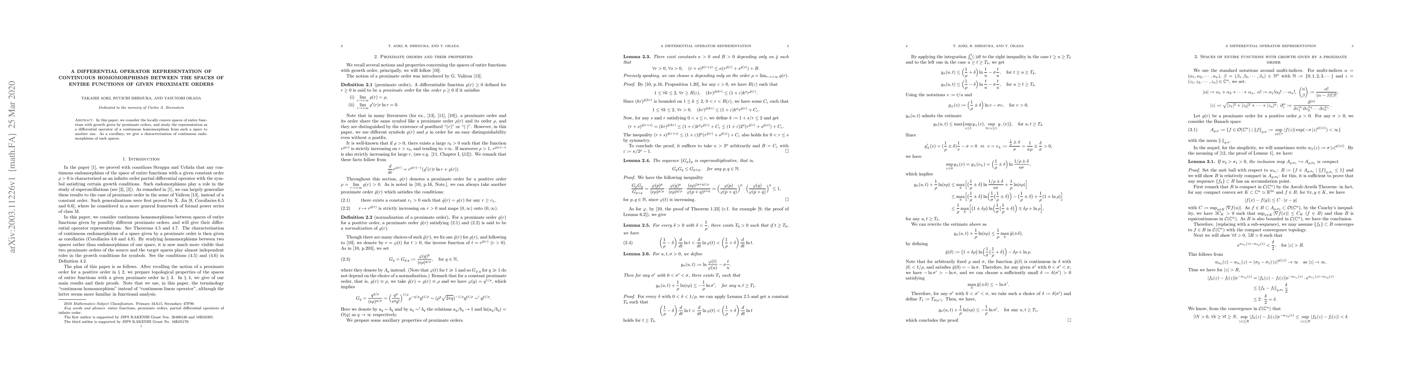 In this paper, we consider the locally convex spaces of entire functions with growth given by proximate orders, and study the representation as a differential operator of a continuous homomorphism from such a space to another one. As a corollary, we give a characterization of continuous endomorphisms of such spaces.