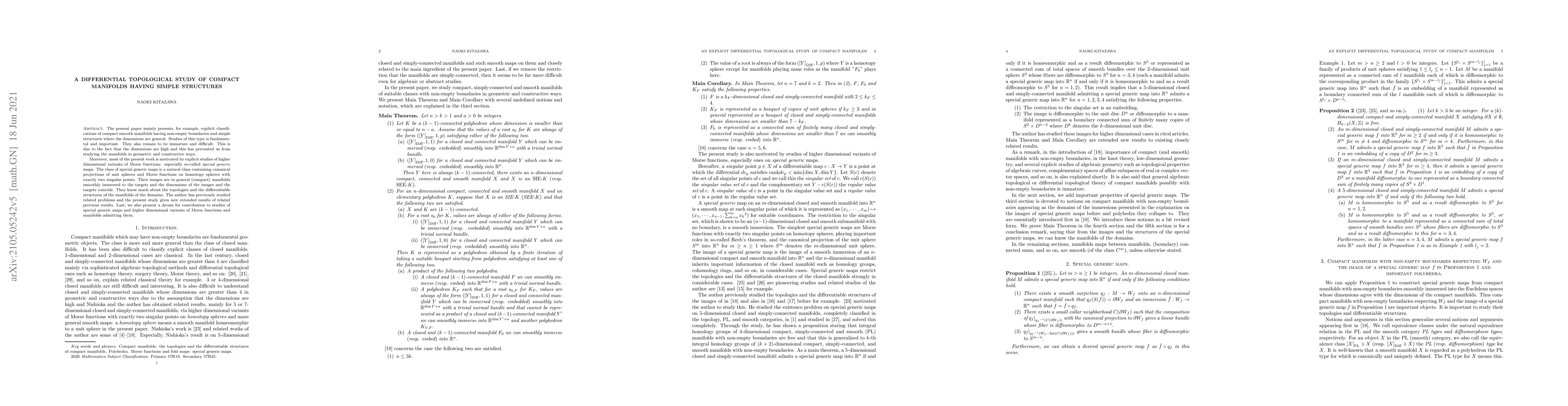 The present paper mainly presents, for example, explicit classifications of compact smooth manifolds having non-empty boundaries and simple structures where the dimensions are general. Studies of this type is fundamental and important. They also remain to be immature and difficult. This is due to the fact that the dimensions are high and this has prevented us from studying the manifolds in geometric and constructive ways. Moreover, most of the present work is motivated by explicit studies of higher dimensional variants of Morse functions: especially so-called special generic maps. The class of special generic maps is a natural class containing canonical projections of unit spheres and Morse functions on homotopy spheres with exactly two singular points. Their images are in general (compact) manifolds smoothly immersed to the targets and the dimensions of the images and the targets coincide. They know much about the topologies and the differentiable structures of the manifolds of the domains. The author has previously studied related problems and the present study is also a new study closely related to them. Last, we also present a dream for contribution to studies of special generic maps and higher dimensional variants of Morse functions and manifolds admitting them.