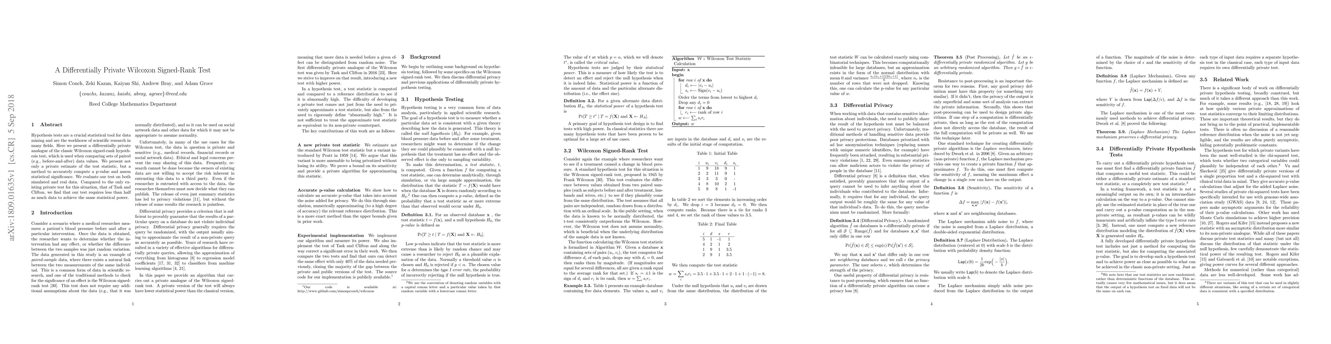 This paper introduces a differentially private version of the Wilcoxon signed-rank test for paired data, providing a method to compute a p-value while maintaining privacy. The proposed test requires less data than existing private tests to achieve comparable statistical power.
