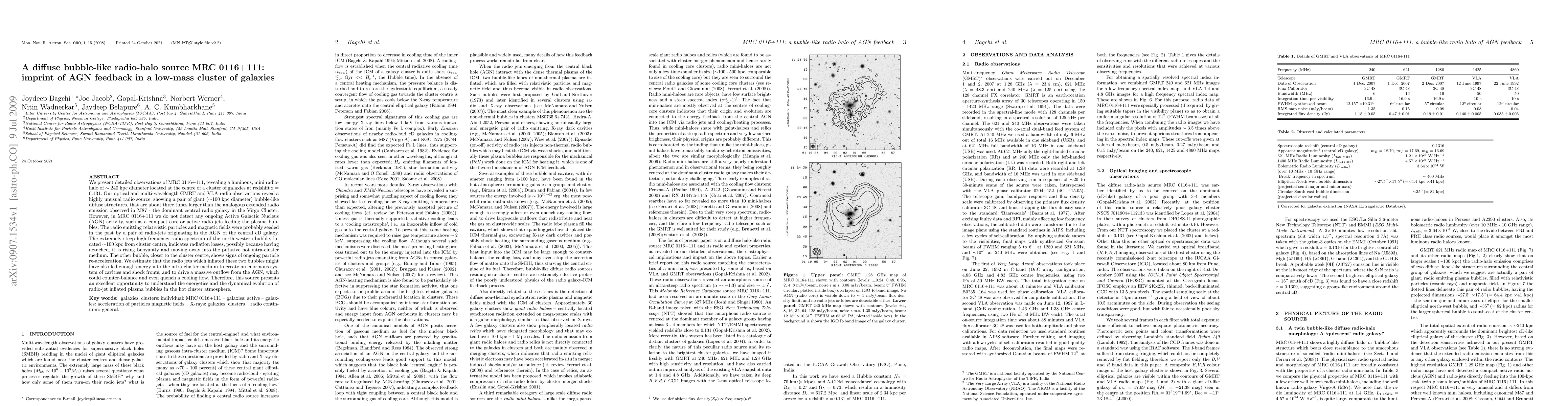 We present detailed observations of MRC 0116+111, revealing a luminous, mini radio-halo of ~240 kpc diameter located at the centre of a cluster of galaxies at redshift z = 0.131. Our optical and multi-wavelength GMRT and VLA radio observations reveal a highly unusual radio source: showing a pair of giant (~100 kpc diameter) bubble-like diffuse structures, that are about three times larger than the analogous extended radio emission observed in M87 - the dominant central radio galaxy in the Virgo Cluster. However, in MRC 0116+111 we do not detect any ongoing Active Galactic Nucleus (AGN) activity, such as a compact core or active radio jets feeding the plasma bubbles. The radio emitting relativistic particles and magnetic fields were probably seeded in the past by a pair of radio-jets originating in the AGN of the central cD galaxy. The extremely steep high-frequency radio spectrum of the north-western bubble, located ~100 kpc from cluster centre, indicates radiation losses, possibly because having detached, it is rising buoyantly and moving away into the putative hot intra-cluster medium. The other bubble, closer to the cluster centre, shows signs of ongoing particle re-acceleration. We estimate that the radio jets which inflated these two bubbles might have also fed enough energy into the intra-cluster medium to create an enormous system of cavities and shock fronts, and to drive a massive outflow from the AGN, which could counter-balance and even quench a cooling flow. Therefore, this source presents an excellent opportunity to understand the energetics and the dynamical evolution of radio-jet inflated plasma bubbles in the hot cluster atmosphere.