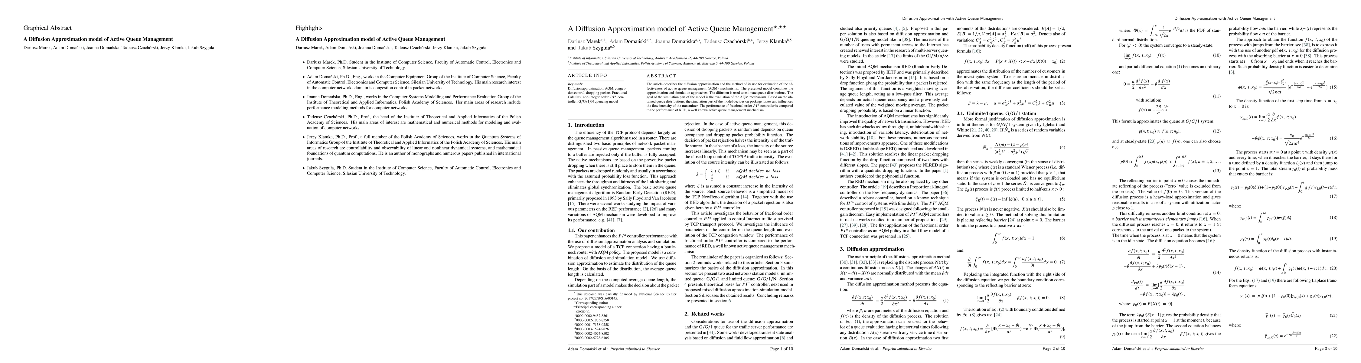 The article describes the diffusion approximation and the method of its use for evaluation of the effectiveness of active queue management (AQM) mechanisms. The presented model combines the approximation and simulation approaches. The diffusion is used to estimate queue distributions. The goal of the simulation part of the model is the evaluation of the AQM mechanism. Based on the obtained queue distributions, the simulation part of the model decides on package losses and influences the flow intensity of the transmitter. The performance of fractional order $PI^\alpha$ controller is compared to the performance of RED, a well known active queue management mechanism.