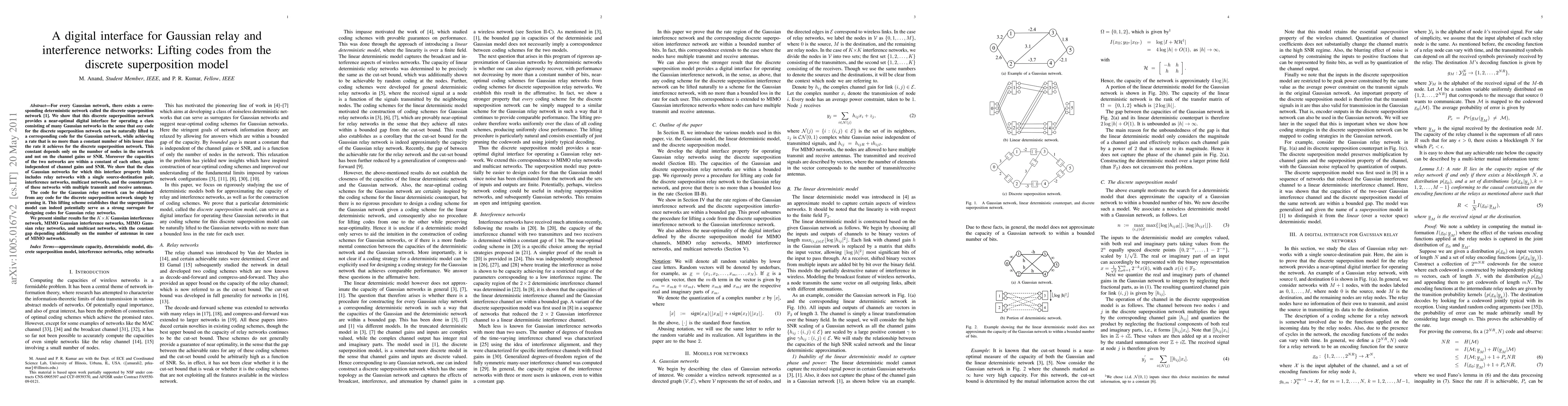 For every Gaussian network, there exists a corresponding deterministic network called the discrete superposition network. We show that this discrete superposition network provides a near-optimal digital interface for operating a class consisting of many Gaussian networks in the sense that any code for the discrete superposition network can be naturally lifted to a corresponding code for the Gaussian network, while achieving a rate that is no more than a constant number of bits lesser than the rate it achieves for the discrete superposition network. This constant depends only on the number of nodes in the network and not on the channel gains or SNR. Moreover the capacities of the two networks are within a constant of each other, again independent of channel gains and SNR. We show that the class of Gaussian networks for which this interface property holds includes relay networks with a single source-destination pair, interference networks, multicast networks, and the counterparts of these networks with multiple transmit and receive antennas. The code for the Gaussian relay network can be obtained from any code for the discrete superposition network simply by pruning it. This lifting scheme establishes that the superposition model can indeed potentially serve as a strong surrogate for designing codes for Gaussian relay networks. We present similar results for the K x K Gaussian interference network, MIMO Gaussian interference networks, MIMO Gaussian relay networks, and multicast networks, with the constant gap depending additionally on the number of antennas in case of MIMO networks.