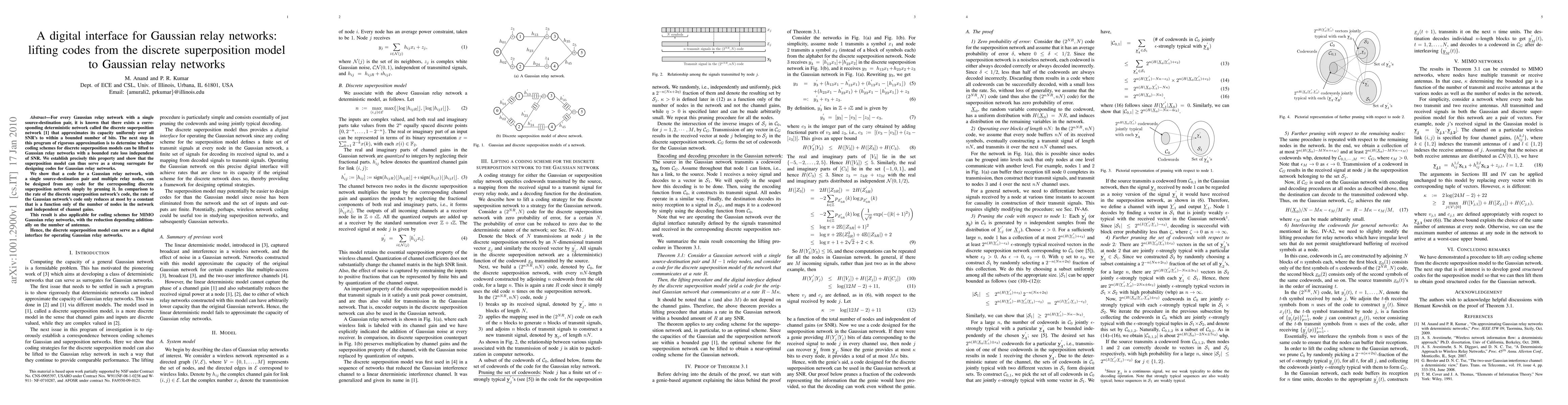 For every Gaussian relay network with a single source-destination pair, it is known that there exists a corresponding deterministic network called the discrete superposition network that approximates its capacity uniformly over all SNR's to within a bounded number of bits. The next step in this program of rigorous approximation is to determine whether coding schemes for discrete superposition models can be lifted to Gaussian relay networks with a bounded rate loss independent of SNR. We establish precisely this property and show that the superposition model can thus serve as a strong surrogate for designing codes for Gaussian relay networks. We show that a code for a Gaussian relay network, with a single source-destination pair and multiple relay nodes, can be designed from any code for the corresponding discrete superposition network simply by pruning it. In comparison to the rate of the discrete superposition network's code, the rate of the Gaussian network's code only reduces at most by a constant that is a function only of the number of nodes in the network and independent of channel gains. This result is also applicable for coding schemes for MIMO Gaussian relay networks, with the reduction depending additionally on the number of antennas. Hence, the discrete superposition model can serve as a digital interface for operating Gaussian relay networks.