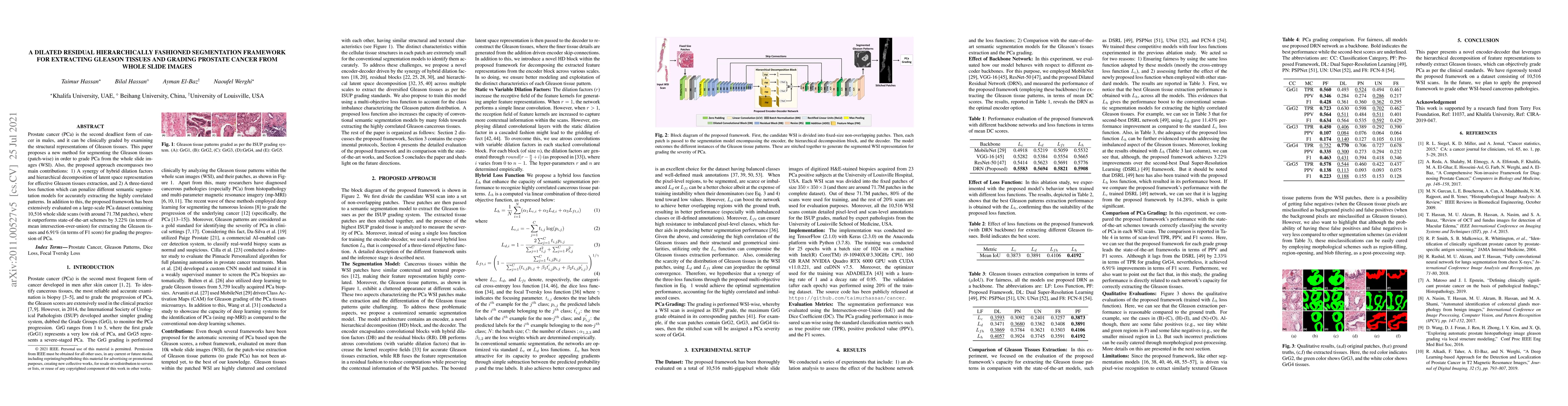 This paper introduces a novel segmentation framework combining dilated residual networks and hierarchical decomposition for segmenting Gleason tissues in prostate cancer grading from whole slide images. The method outperforms existing techniques by achieving higher accuracy in Gleason tissue extraction and prostate cancer progression grading.