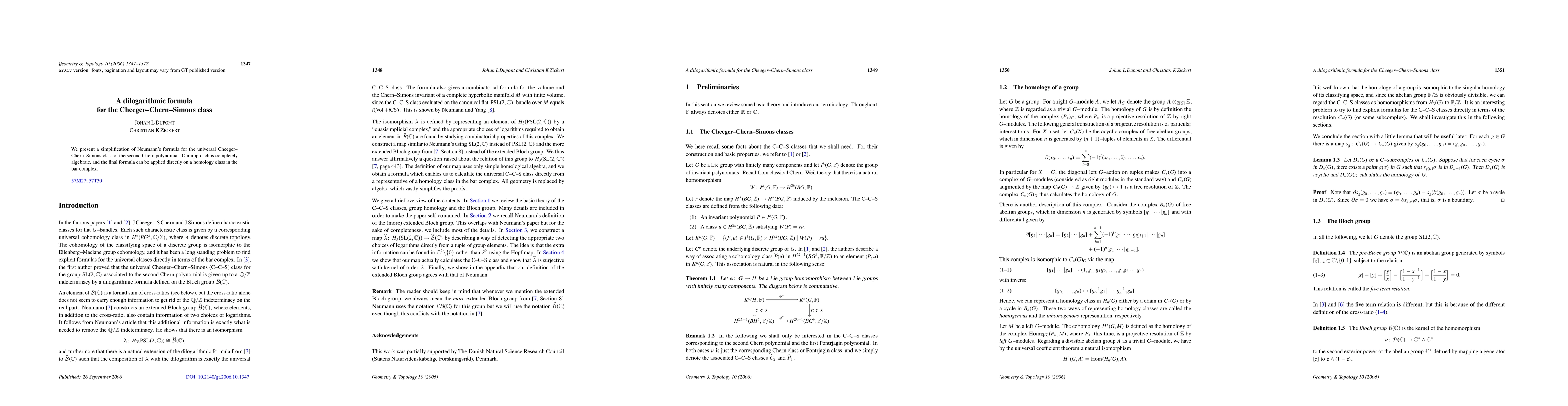 Summary: This paper simplifies Neumann's formula for the universal Cheeger-Chern-Simons class of the second Chern polynomial using a purely algebraic method, providing a dilogarithmic formula applicable directly to a homology class in the bar complex.