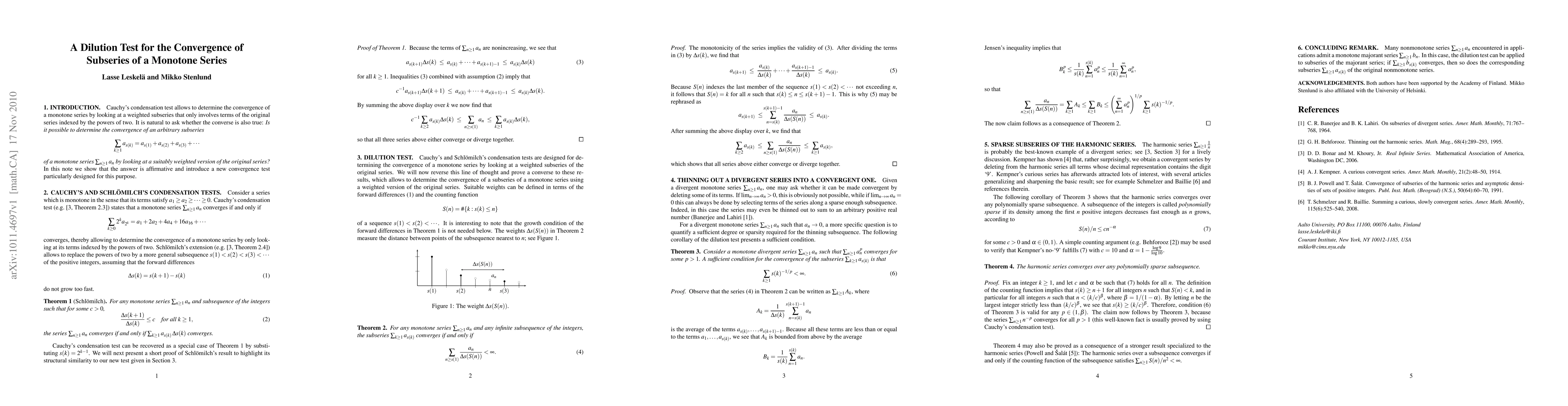 Cauchy's condensation test allows to determine the convergence of a monotone series by looking at a weighted subseries that only involves terms of the original series indexed by the powers of two. It is natural to ask whether the converse is also true: Is it possible to determine the convergence of an arbitrary subseries of a monotone series by looking at a suitably weighted version of the original series? In this note we show that the answer is affirmative and introduce a new convergence test particularly designed for this purpose.