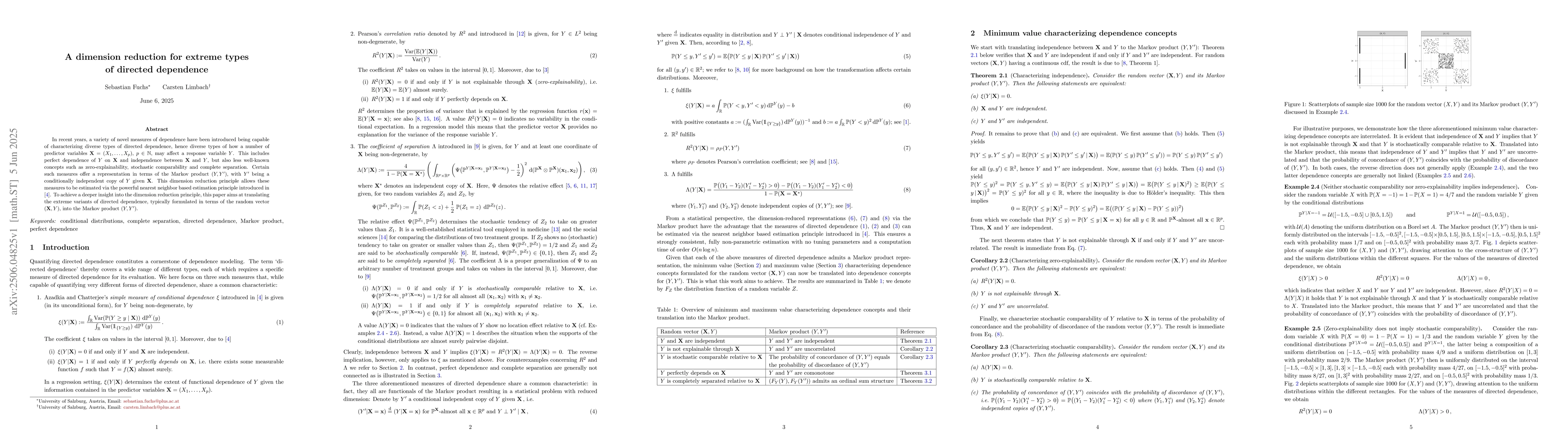The paper introduces a dimension reduction principle for extreme types of directed dependence, translating these into the Markov product (Y, Y'), allowing estimation via nearest neighbor-based methods.