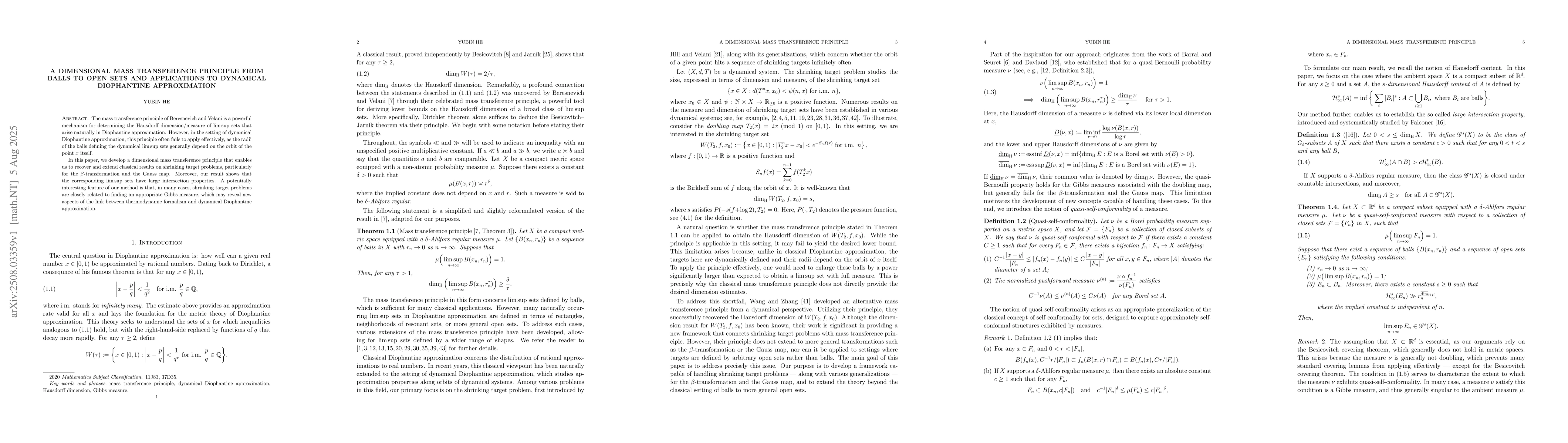 The mass transference principle of Beresnevich and Velani is a powerful mechanism for determining the Hausdorff dimension/measure of $\limsup$ sets that arise naturally in Diophantine approximation. However, in the setting of dynamical Diophantine approximation, this principle often fails to apply effectively, as the radii of the balls defining the dynamical $\limsup$ sets generally depend on the orbit of the point $x$ itself. In this paper, we develop a dimensional mass transference principle that enables us to recover and extend classical results on shrinking target problems, particularly for the $\beta$-transformation and the Gauss map. Moreover, our result shows that the corresponding $\limsup$ sets have large intersection properties. A potentially interesting feature of our method is that, in many cases, shrinking target problems are closely related to finding an appropriate Gibbs measure, which may reveal new aspects of the link between thermodynamic formalism and dynamical Diophantine approximation.