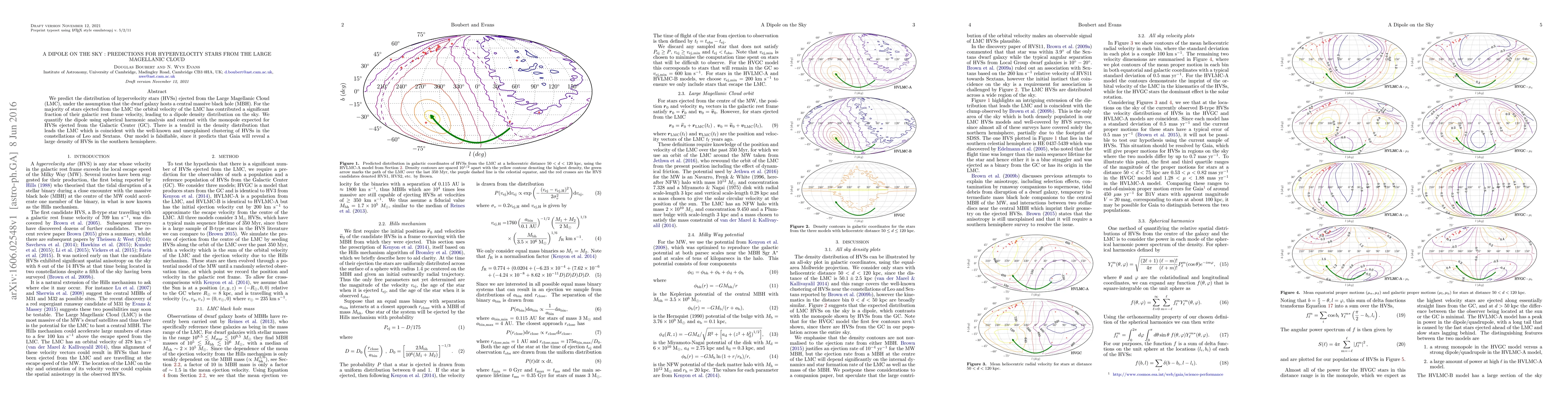 This paper predicts the distribution of hypervelocity stars ejected from the Large Magellanic Cloud, attributing the observed dipole pattern to the LMC's orbital velocity, and contrasts it with the monopole expected from the Galactic Center. The model predicts a significant density of HVSs in the southern hemisphere, detectable by Gaia.
