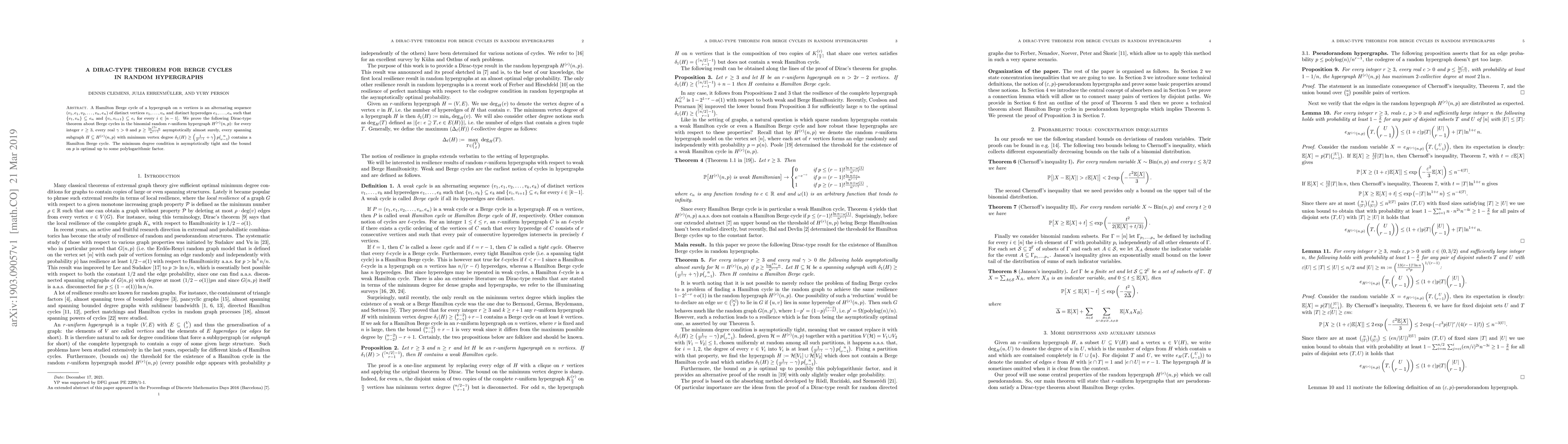The paper proves a Dirac-type theorem for Hamilton Berge cycles in random hypergraphs, showing that with high probability, any sufficiently dense subgraph contains a Hamilton Berge cycle.