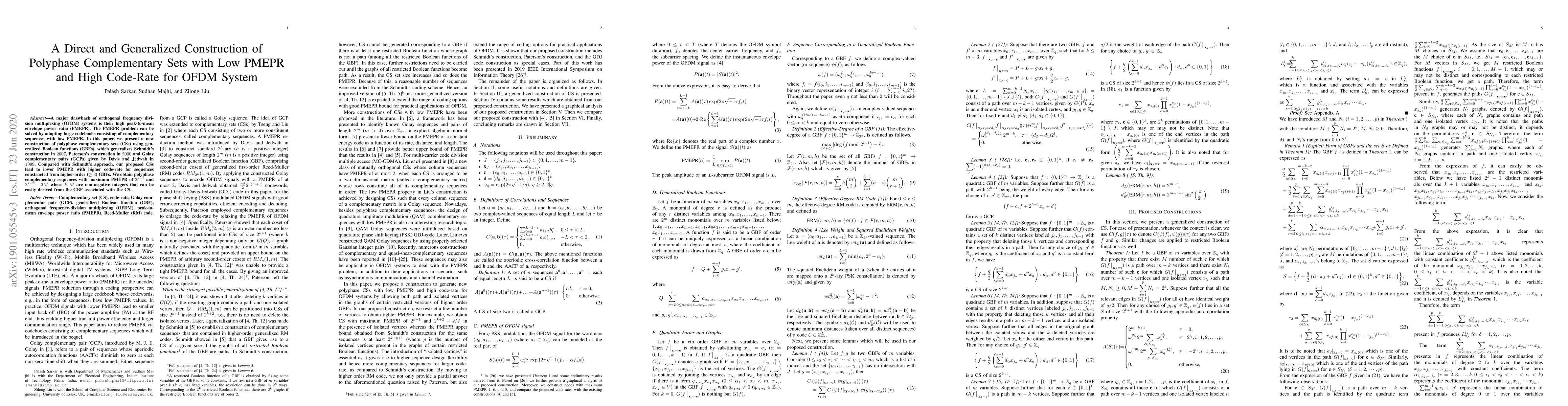 A new method for creating polyphase complementary sets with low peak-to-mean envelope power ratio is proposed using generalized Boolean functions, improving code-rate while reducing PMEPR compared to existing constructions.