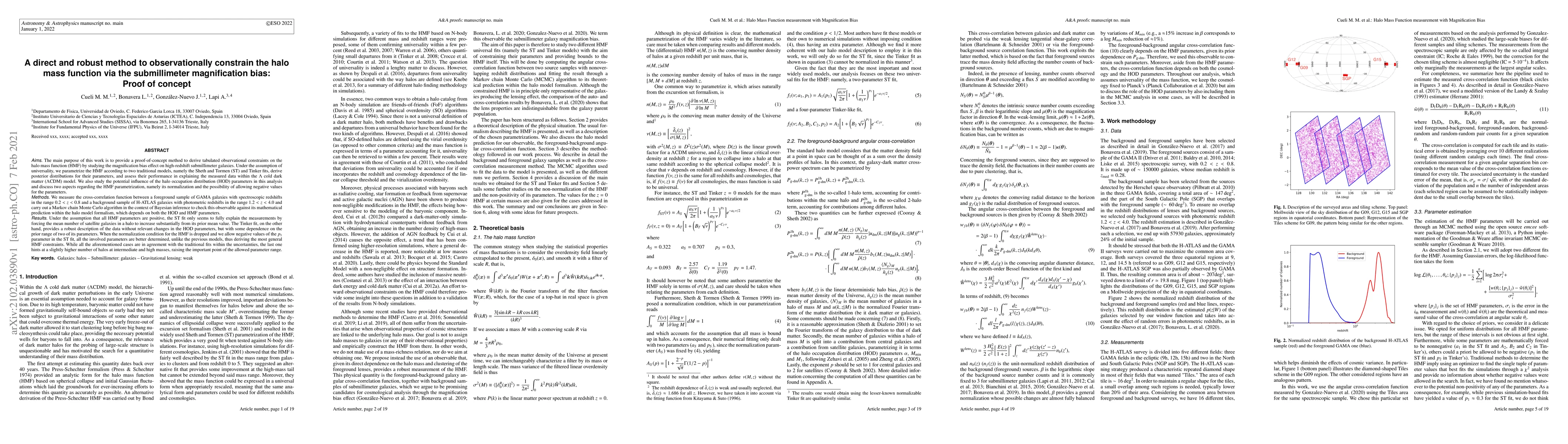 This paper proposes a method to observationally constrain the halo mass function (HMF) using the magnification bias effect on high-redshift submillimeter galaxies. The study finds that the Tinker fit provides a robust description of the data, while allowing negative values in the ST fit's parameters leads to better determination of all parameters and hints at a higher number of halos at intermediate and high masses.