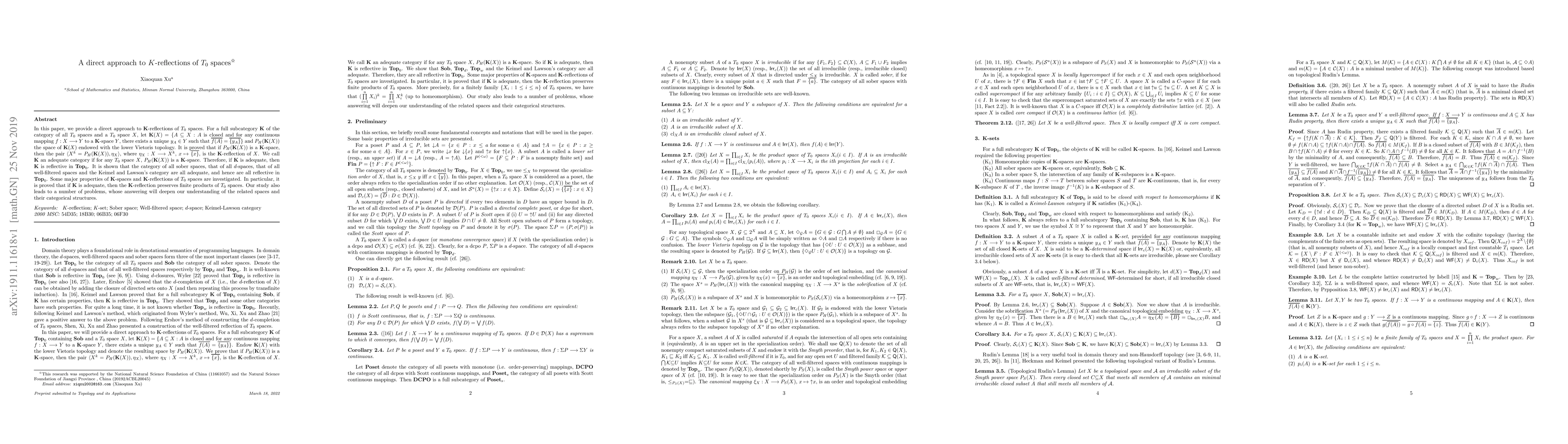 This paper introduces a direct method for constructing $\mathbf{K}$-reflections of $T_0$ spaces, proving that if $P_H(\mathbf{K}(X))$ is a $\mathbf{K}$-space, then $X^k=P_H(\mathbf{K}(X))$ with $\eta_X$ is the $\mathbf{K}$-reflection. It defines adequate categories and shows that several notable categories are reflective in $\mathbf{Top}_0$, preserving finite products under $\mathbf{K}$-reflections.