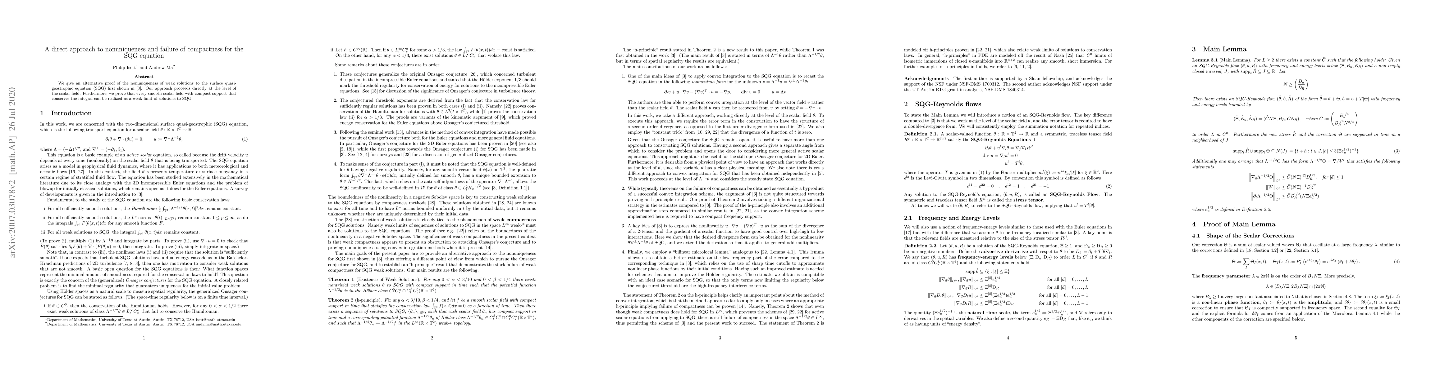 Summary: This paper provides a direct proof of the nonuniqueness of weak solutions to the SQG equation and demonstrates that smooth scalar fields with compact support conserving the integral can be realized as weak limits of SQG solutions.