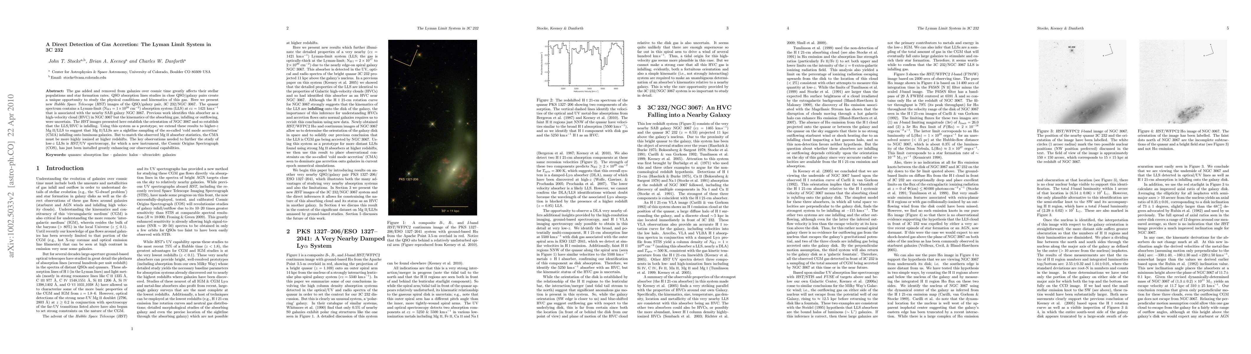 This research uses Hubble Space Telescope images to confirm that gas in the Lyman-limit system (LLS) of the QSO/galaxy pair 3C 232/NGC 3067 is infalling, suggesting it represents 'cold mode accretion' onto galaxies. The study proposes that higher-z Mg II/LLS systems are similarly infalling but more ionized at greater distances, emphasizing the need for advanced UV spectroscopy using the Cosmic Origins Spectrograph for further investigation.
