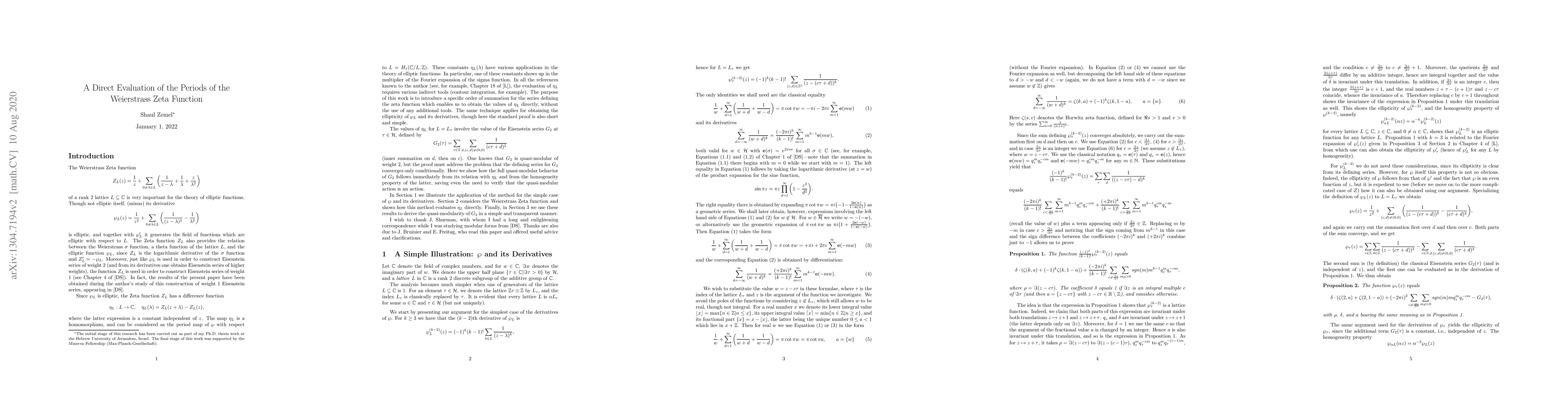 This paper presents a direct method for evaluating the periods of the Weierstrass Zeta function by optimizing the summation order of its defining series. It also demonstrates the quasi-modularity of the weight 2 Eisenstein series through the derived difference function and its homogeneity properties.