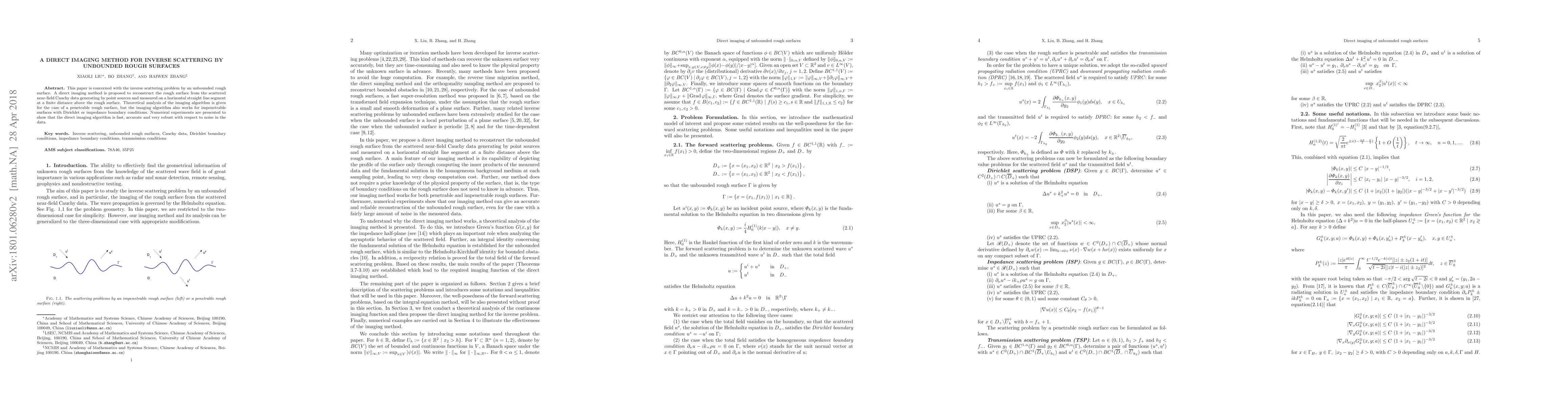 This paper proposes a direct imaging method for reconstructing unbounded rough surfaces from scattered near-field Cauchy data, demonstrating theoretical analysis and numerical experiments that show the method's accuracy, speed, and robustness against noise. The method applies to both penetrable and impenetrable surfaces with different boundary conditions.