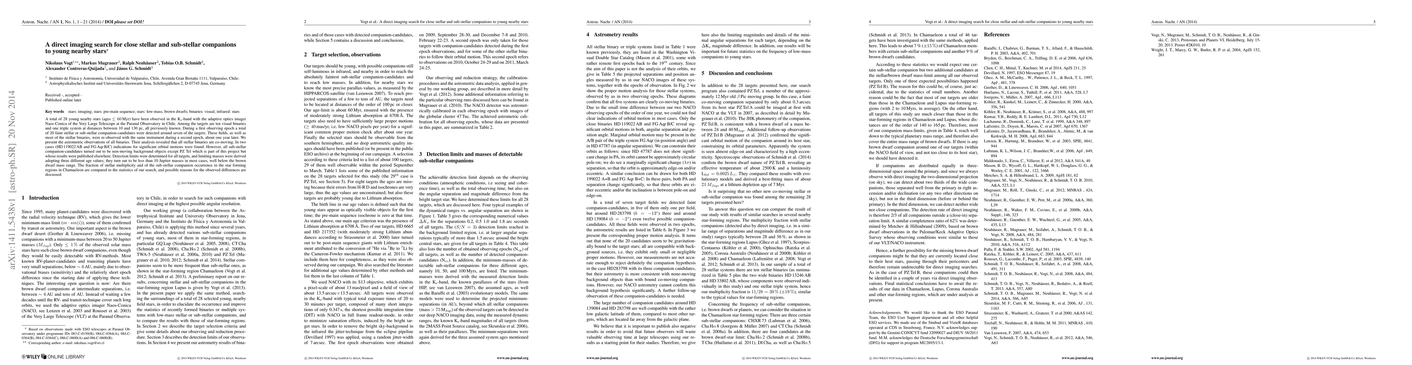 This paper reports on a direct imaging search for stellar and sub-stellar companions around 28 young nearby stars using the Naos-Conica adaptive optics imager. It found 20 companion-candidates around seven stars, with only two showing potential orbital motion, while the rest were non-moving background objects.