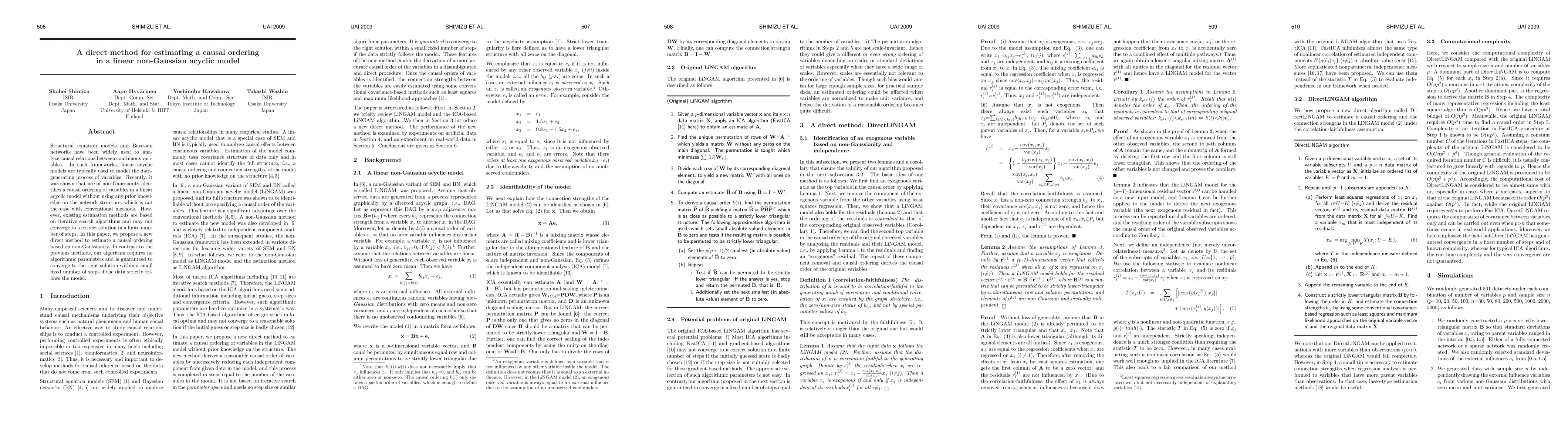 This paper proposes a direct method for estimating causal ordering in linear non-Gaussian acyclic models using non-Gaussianity, ensuring convergence to the correct solution within a fixed number of steps.