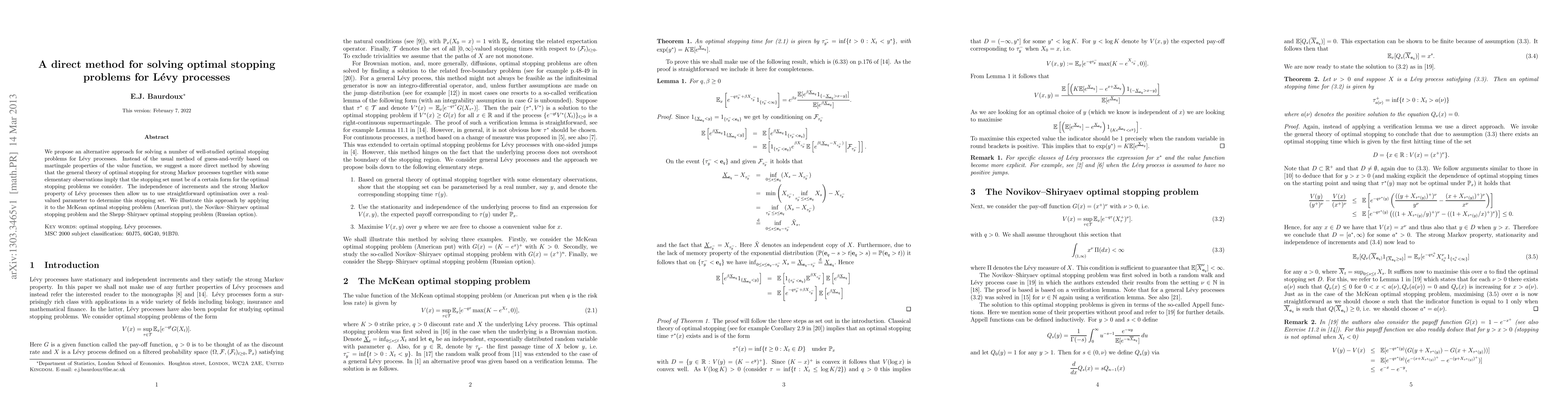 This paper introduces a novel, direct method for solving optimal stopping problems for Lévy processes, bypassing traditional guess-and-verify techniques. Instead, it leverages the general theory of optimal stopping for strong Markov processes and elementary observations to determine the optimal stopping set through straightforward optimization.