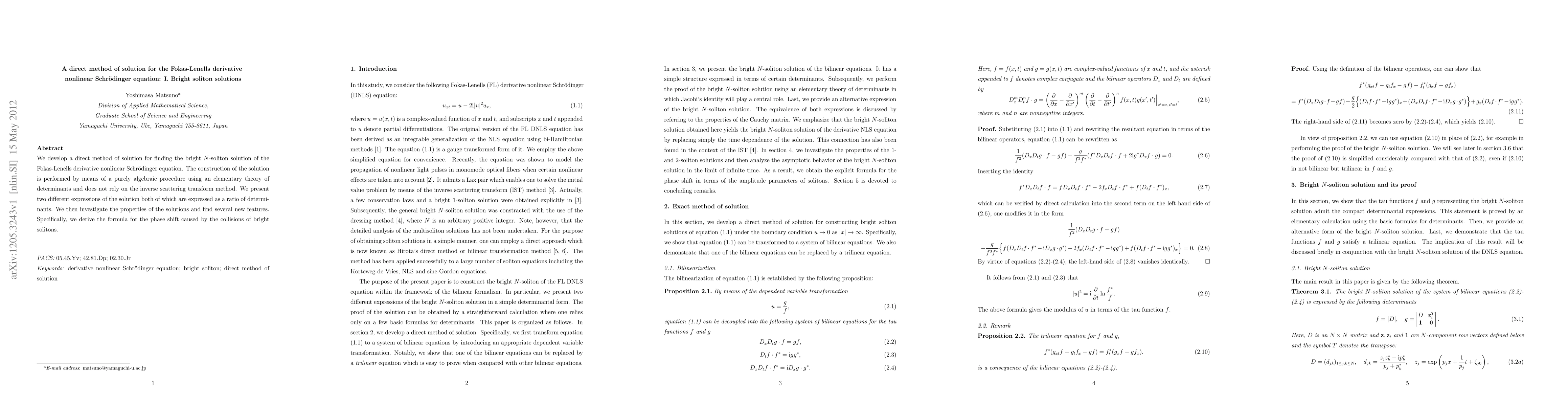This paper introduces a direct algebraic method for finding bright soliton solutions to the Fokas-Lenells derivative nonlinear Schrödinger equation, avoiding the inverse scattering transform. The method uses determinants to express the solutions, revealing new features including a formula for the phase shift during soliton collisions.