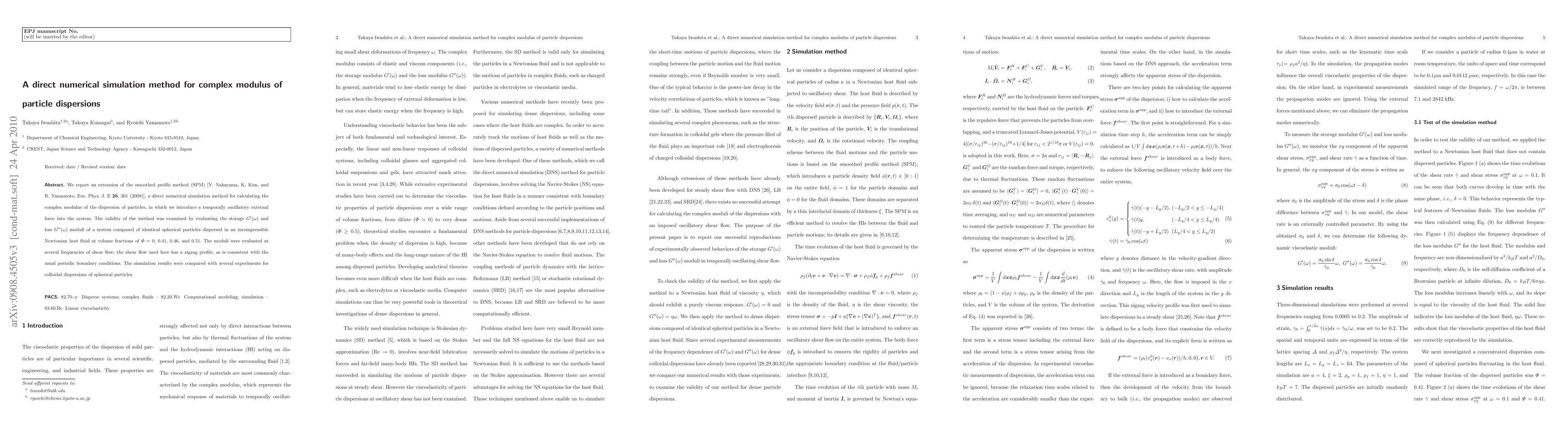 This paper extends the smoothed profile method (SPM) to calculate the complex modulus of particle dispersions by introducing a temporally oscillatory external force. The method's validity is tested by evaluating the storage and loss moduli of spherical particles in a Newtonian fluid at various volume fractions and shear frequencies.