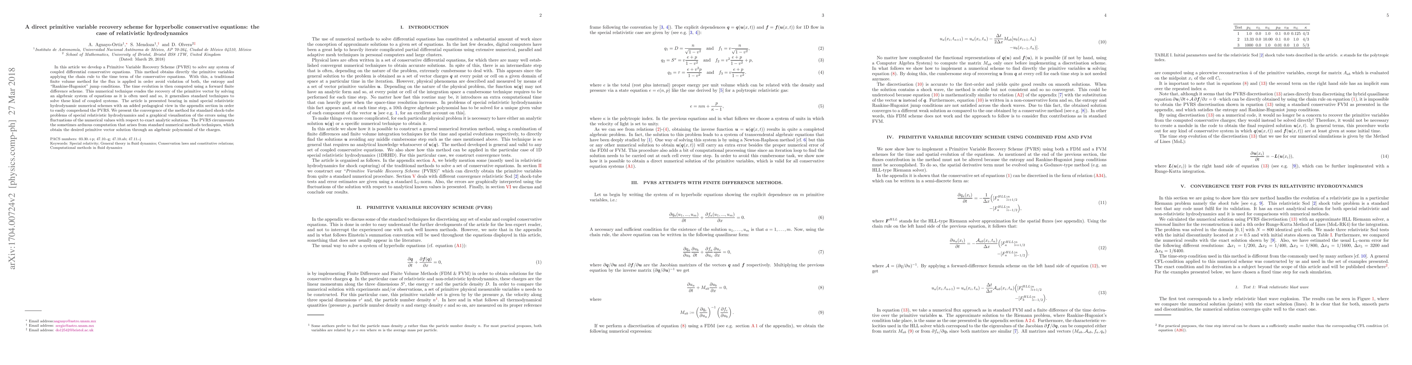 This paper introduces a Primitive Variable Recovery Scheme (PVRS) to directly solve hyperbolic conservative equations, avoiding the need for solving algebraic systems. The method ensures compliance with entropy and Rankine-Hugoniot conditions, and is demonstrated through relativistic hydrodynamics applications, showing improved computational efficiency and accuracy.