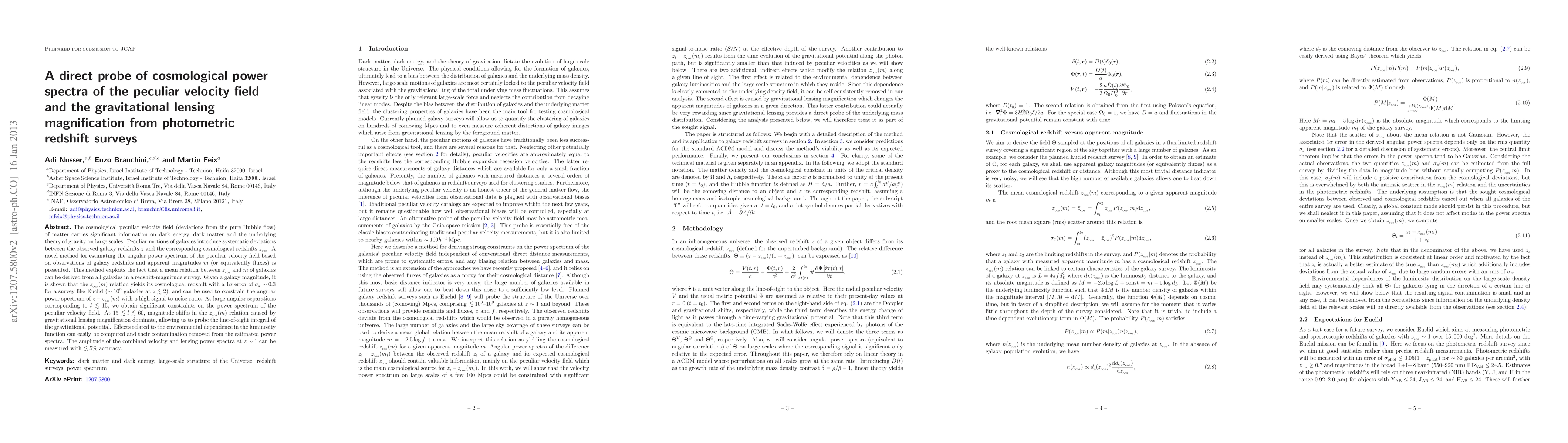 This paper introduces a novel method to estimate the angular power spectrum of the peculiar velocity field using galaxy redshifts and apparent magnitudes from photometric surveys. The method leverages a mean relation between cosmological redshifts and magnitudes to achieve high-precision measurements, enabling significant constraints on the peculiar velocity field and gravitational lensing magnification at various angular scales.