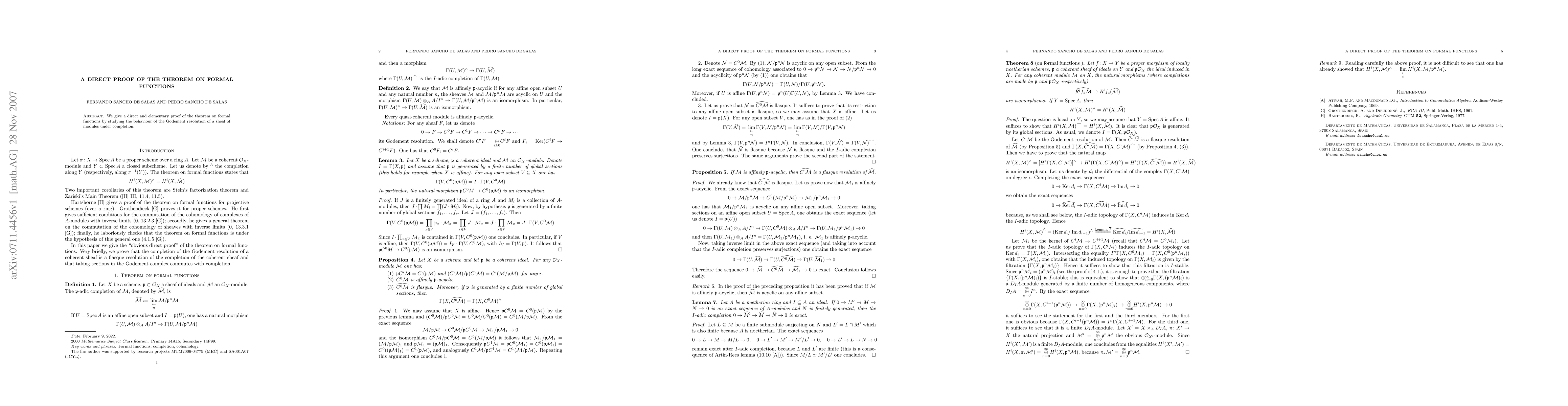 Summary: This paper presents a straightforward proof of the theorem on formal functions by analyzing the Godement resolution's behavior under completion, avoiding complex methods.