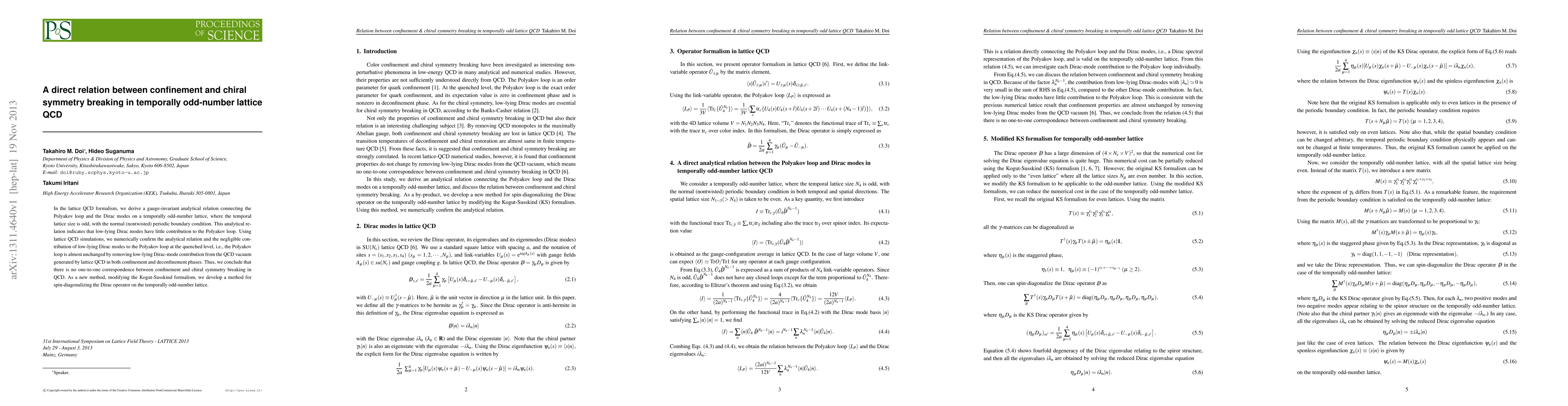 In the lattice QCD formalism, we derive a gauge-invariant analytical relation connecting the Polyakov loop and the Dirac modes on a temporally odd-number lattice, where the temporal lattice size is odd, with the normal (nontwisted) periodic boundary condition. This analytical relation indicates that low-lying Dirac modes have little contribution to the Polyakov loop. Using lattice QCD simulations, we numerically confirm the analytical relation and the negligible contribution of low-lying Dirac modes to the Polyakov loop at the quenched level, i.e., the Polyakov loop is almost unchanged by removing low-lying Dirac-mode contribution from the QCD vacuum generated by lattice QCD in both confinement and deconfinement phases. Thus, we conclude that there is no one-to-one correspondence between confinement and chiral symmetry breaking in QCD. As a new method, modifying the Kogut-Susskind formalism, we develop a method for spin-diagonalizing the Dirac operator on the temporally odd-number lattice.