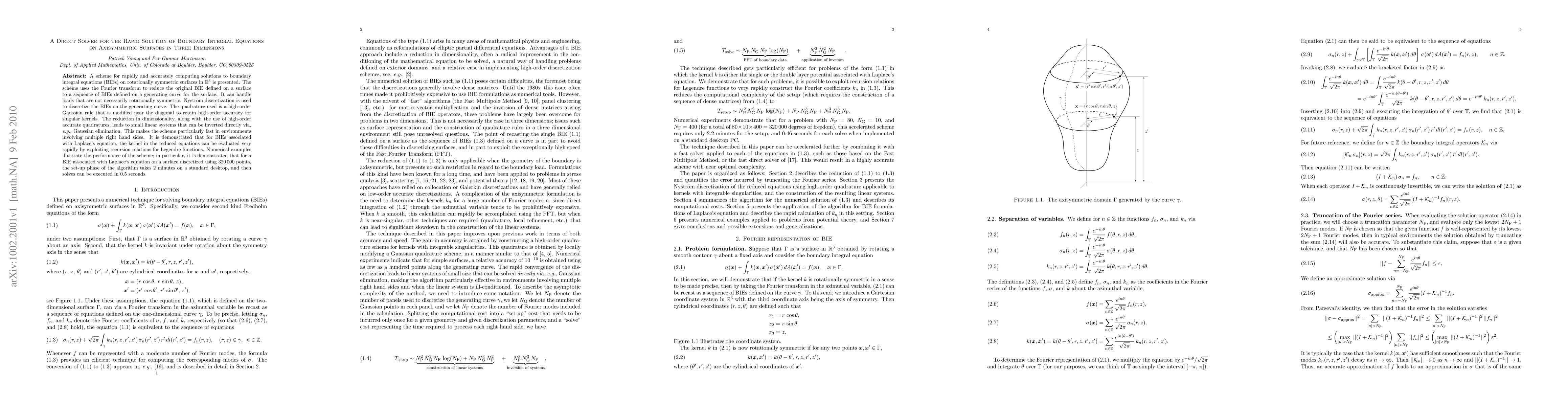 A new method for solving boundary integral equations on axisymmetric surfaces in 3D is presented, which uses the Fourier transform and high-order Gaussian quadrature to achieve fast and accurate solutions.