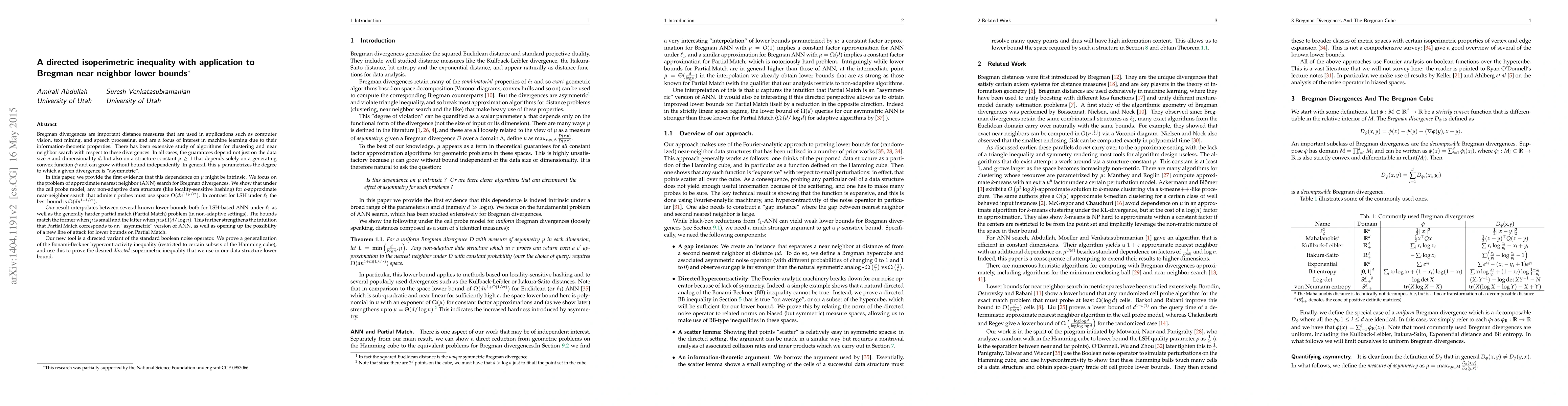 Bregman divergences $D_\phi$ are a class of divergences parametrized by a convex function $\phi$ and include well known distance functions like $\ell_2^2$ and the Kullback-Leibler divergence. There has been extensive research on algorithms for problems like clustering and near neighbor search with respect to Bregman divergences, in all cases, the algorithms depend not just on the data size $n$ and dimensionality $d$, but also on a structure constant $\mu \ge 1$ that depends solely on $\phi$ and can grow without bound independently. In this paper, we provide the first evidence that this dependence on $\mu$ might be intrinsic. We focus on the problem of approximate near neighbor search for Bregman divergences. We show that under the cell probe model, any non-adaptive data structure (like locality-sensitive hashing) for $c$-approximate near-neighbor search that admits $r$ probes must use space $\Omega(n^{1 + \frac{\mu}{c r}})$. In contrast, for LSH under $\ell_1$ the best bound is $\Omega(n^{1+\frac{1}{cr}})$. Our new tool is a directed variant of the standard boolean noise operator. We show that a generalization of the Bonami-Beckner hypercontractivity inequality exists "in expectation" or upon restriction to certain subsets of the Hamming cube, and that this is sufficient to prove the desired isoperimetric inequality that we use in our data structure lower bound. We also present a structural result reducing the Hamming cube to a Bregman cube. This structure allows us to obtain lower bounds for problems under Bregman divergences from their $\ell_1$ analog. In particular, we get a (weaker) lower bound for approximate near neighbor search of the form $\Omega(n^{1 + \frac{1}{cr}})$ for an $r$-query non-adaptive data structure, and new cell probe lower bounds for a number of other near neighbor questions in Bregman space.