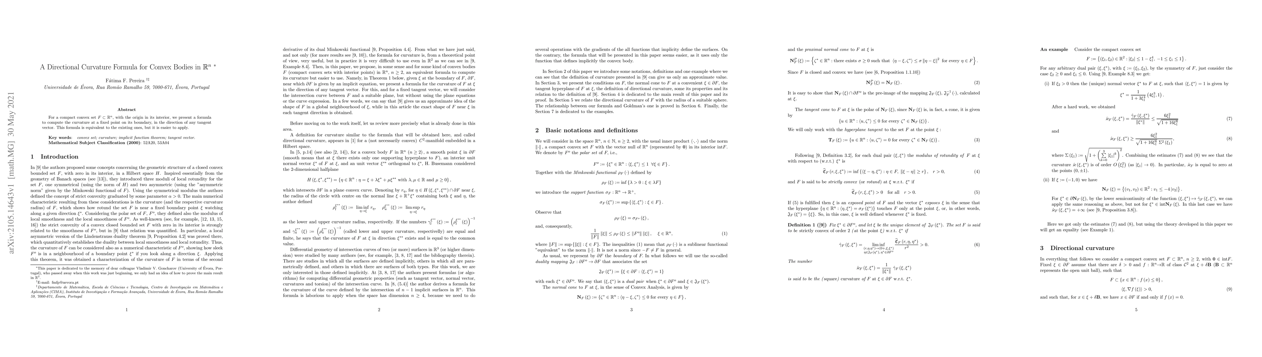 For a compact convex set F in R^n, with the origin in its interior, we present a formula to compute the curvature at a fixed point on its boundary, in the direction of any tangent vector. This formula is equivalent to the existing ones, but it is easier to apply.