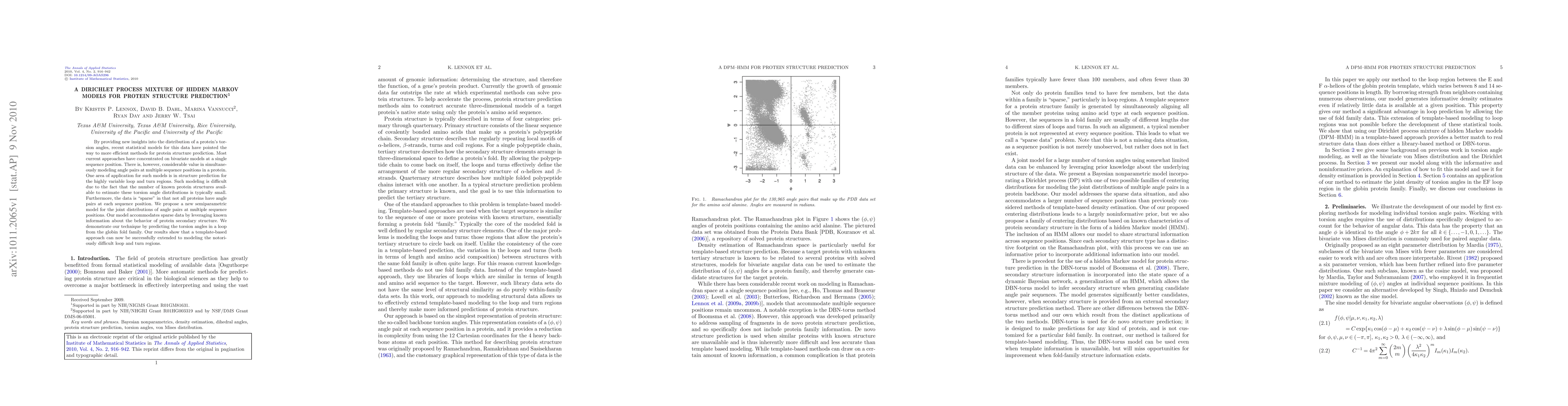 By providing new insights into the distribution of a protein's torsion angles, recent statistical models for this data have pointed the way to more efficient methods for protein structure prediction. Most current approaches have concentrated on bivariate models at a single sequence position. There is, however, considerable value in simultaneously modeling angle pairs at multiple sequence positions in a protein. One area of application for such models is in structure prediction for the highly variable loop and turn regions. Such modeling is difficult due to the fact that the number of known protein structures available to estimate these torsion angle distributions is typically small. Furthermore, the data is "sparse" in that not all proteins have angle pairs at each sequence position. We propose a new semiparametric model for the joint distributions of angle pairs at multiple sequence positions. Our model accommodates sparse data by leveraging known information about the behavior of protein secondary structure. We demonstrate our technique by predicting the torsion angles in a loop from the globin fold family. Our results show that a template-based approach can now be successfully extended to modeling the notoriously difficult loop and turn regions.