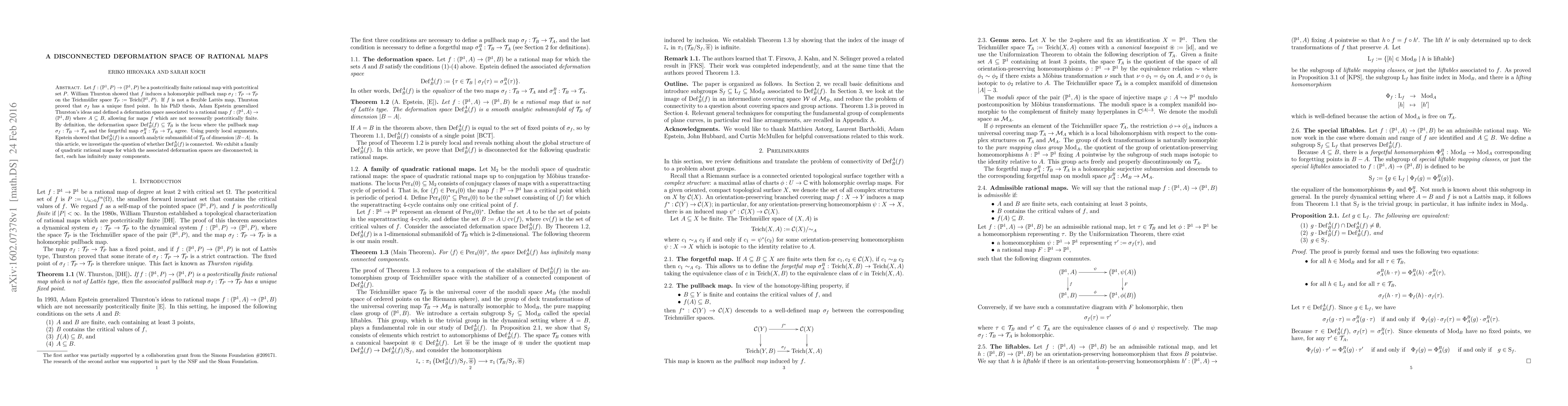 This paper investigates the connectivity of deformation spaces associated with rational maps, showing that for certain families of quadratic rational maps, these spaces are disconnected and consist of infinitely many components.