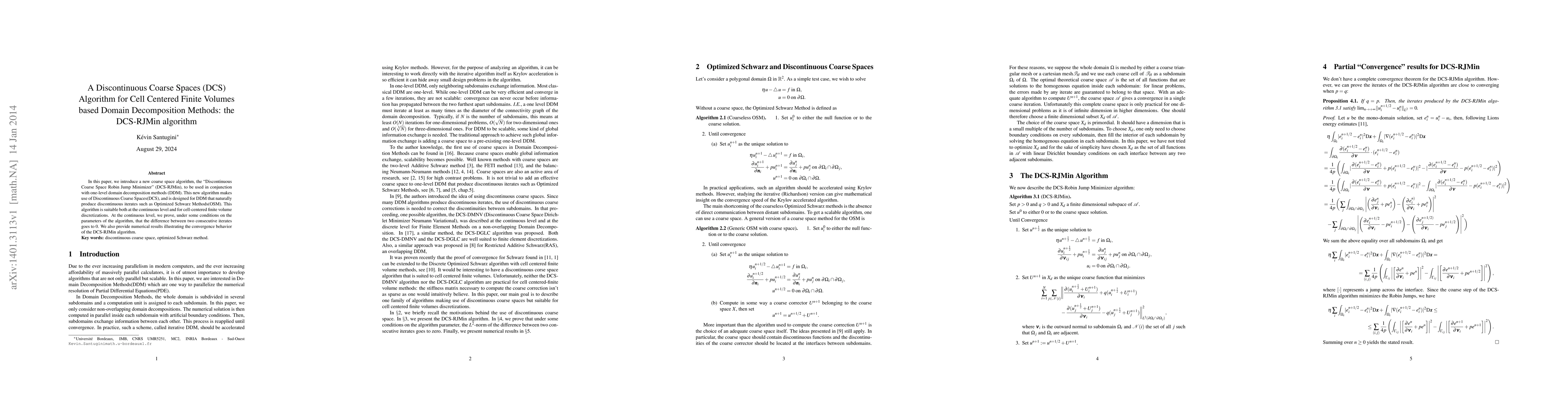 In this paper, we introduce a new coarse space algorithm, the "Discontinuous Coarse Space Robin Jump Minimizer" (DCS-RJMin), to be used in conjunction with one-level domain decomposition methods (DDM). This new algorithm makes use of Discontinuous Coarse Spaces(DCS), and is designed for DDM that naturally produce discontinuous iterates such as Optimized Schwarz Methods(OSM). This algorithm is suitable both at the continuous level and for cell-centered finite volume discretizations. At the continuous level, we prove, under some conditions on the parameters of the algorithm, that the difference between two consecutive iterates goes to $0$. We also provide numerical results illustrating the convergence behavior of the DCS-RJMin algorithm.