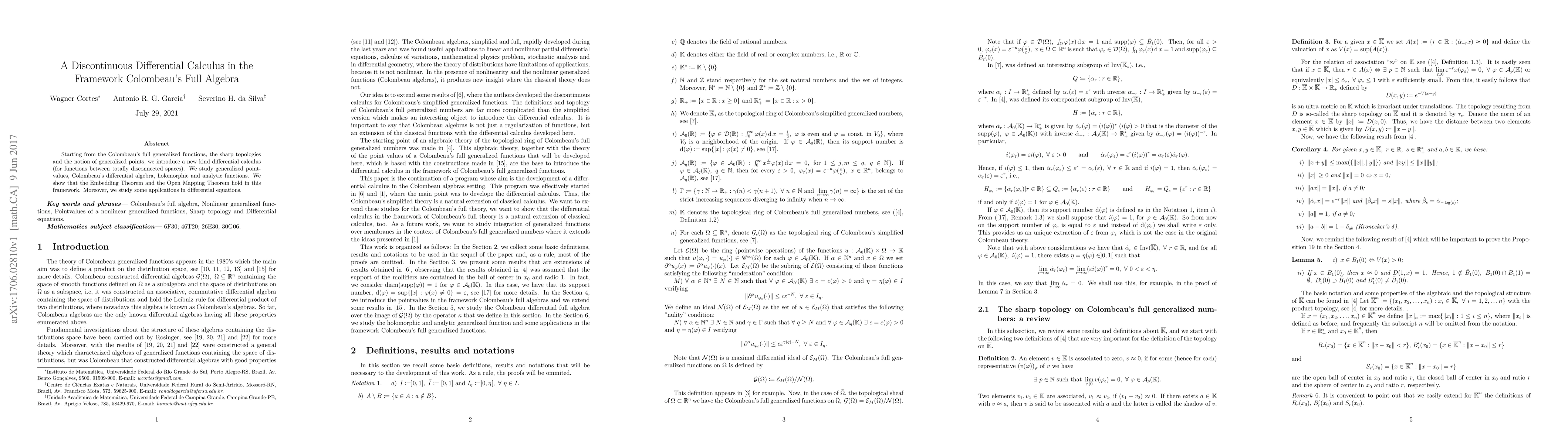 Starting from the Colombeau's full generalized functions, the sharp topologies and the notion of generalized points, we introduce a new kind differential calculus (for functions between totally disconnected spaces). We study generalized pointvalues, Colombeau's differential algebra, holomorphic and analytic functions. We show that the Embedding Theorem and the Open Mapping Theorem hold in this framework. Moreover, we study some applications in differential equations.