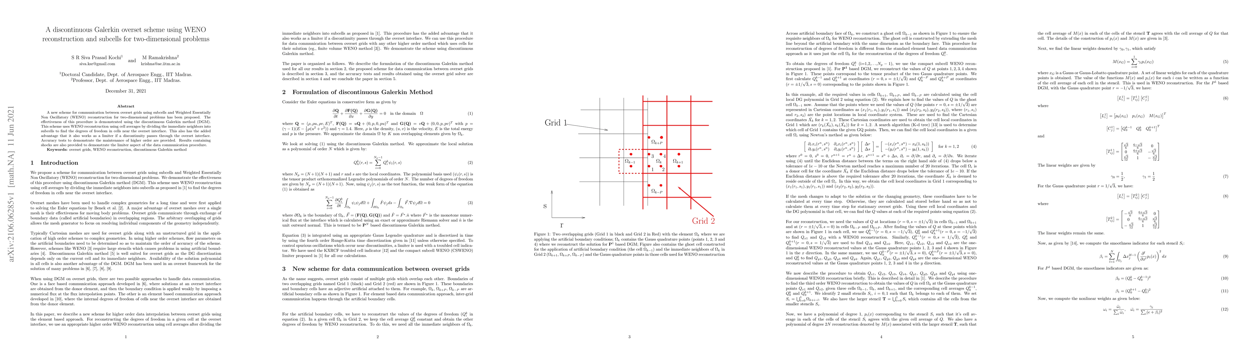 This paper proposes a new discontinuous Galerkin overset scheme combining WENO reconstruction and subcells for two-dimensional problems, demonstrating effective communication between overset grids and maintaining higher-order accuracy, especially near discontinuities.