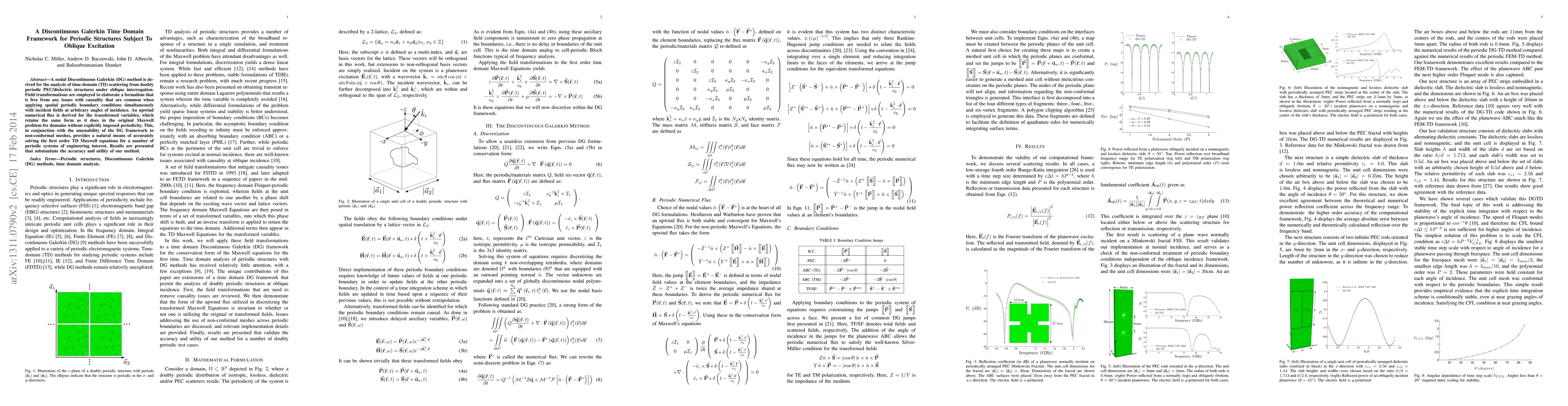 This paper develops a nodal Discontinuous Galerkin method for time-domain scattering analysis of doubly periodic structures under oblique excitation, addressing causality issues with field transformations and employing an upwind numerical flux. The method's accuracy and effectiveness are demonstrated through presented results.