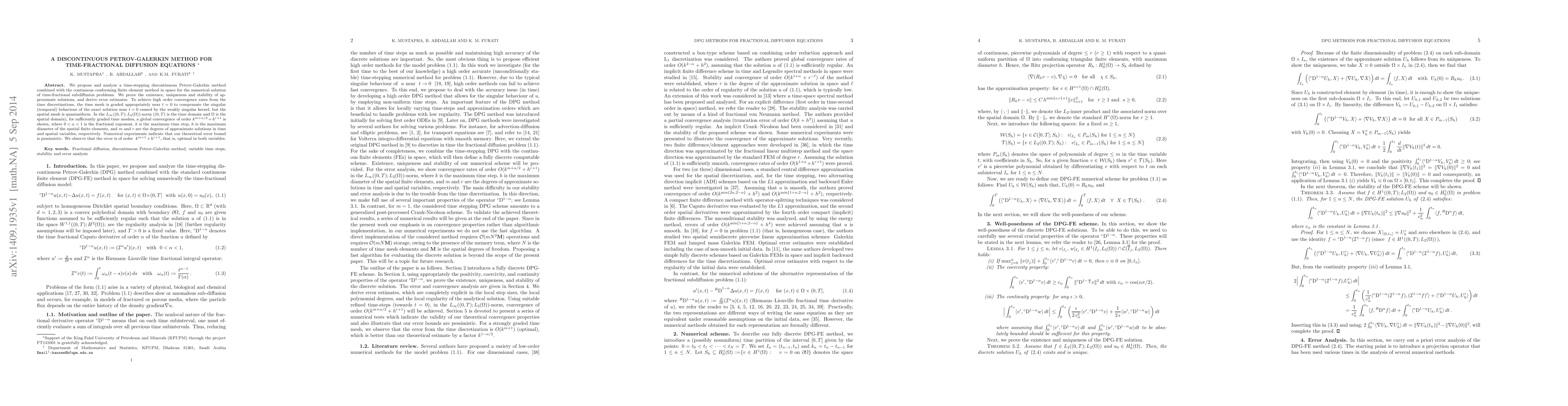 A new method for solving time-fractional diffusion equations is proposed, showing a global convergence of order k^{m+1}+h^{r+1}, with numerical experiments suggesting an optimal error bound in both space and time variables.
