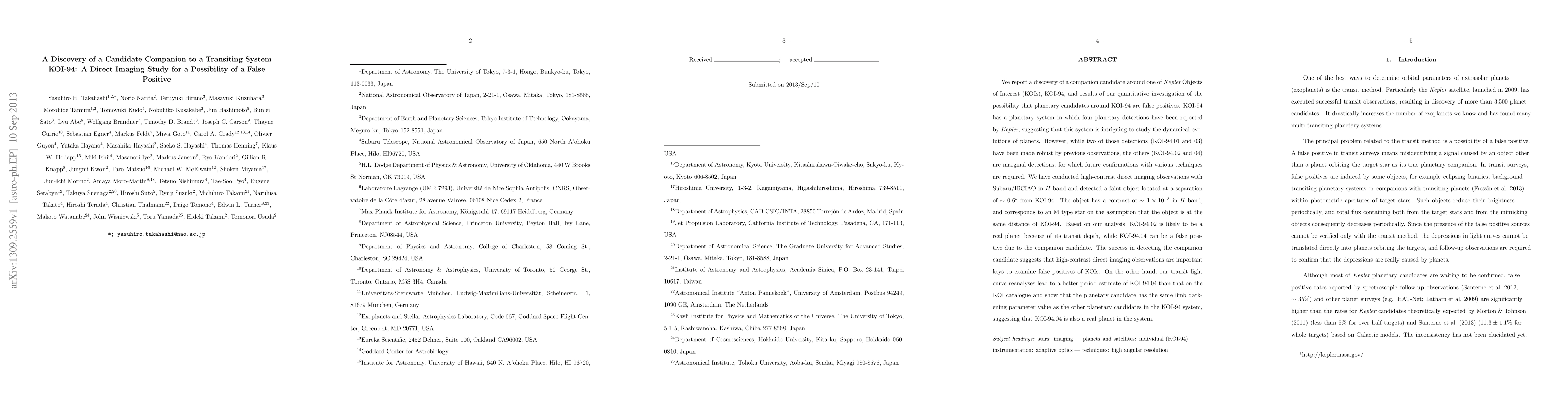 We report a discovery of a companion candidate around one of {\it Kepler} Objects of Interest (KOIs), KOI-94, and results of our quantitative investigation of the possibility that planetary candidates around KOI-94 are false positives. KOI-94 has a planetary system in which four planetary detections have been reported by {\it Kepler}, suggesting that this system is intriguing to study the dynamical evolutions of planets. However, while two of those detections (KOI-94.01 and 03) have been made robust by previous observations, the others (KOI-94.02 and 04) are marginal detections, for which future confirmations with various techniques are required. We have conducted high-contrast direct imaging observations with Subaru/HiCIAO in $H$ band and detected a faint object located at a separation of $\sim0.6''$ from KOI-94. The object has a contrast of $\sim 1\times 10^{-3}$ in $H$ band, and corresponds to an M type star on the assumption that the object is at the same distance of KOI-94. Based on our analysis, KOI-94.02 is likely to be a real planet because of its transit depth, while KOI-94.04 can be a false positive due to the companion candidate. The success in detecting the companion candidate suggests that high-contrast direct imaging observations are important keys to examine false positives of KOIs. On the other hand, our transit light curve reanalyses lead to a better period estimate of KOI-94.04 than that on the KOI catalogue and show that the planetary candidate has the same limb darkening parameter value as the other planetary candidates in the KOI-94 system, suggesting that KOI-94.04 is also a real planet in the system.